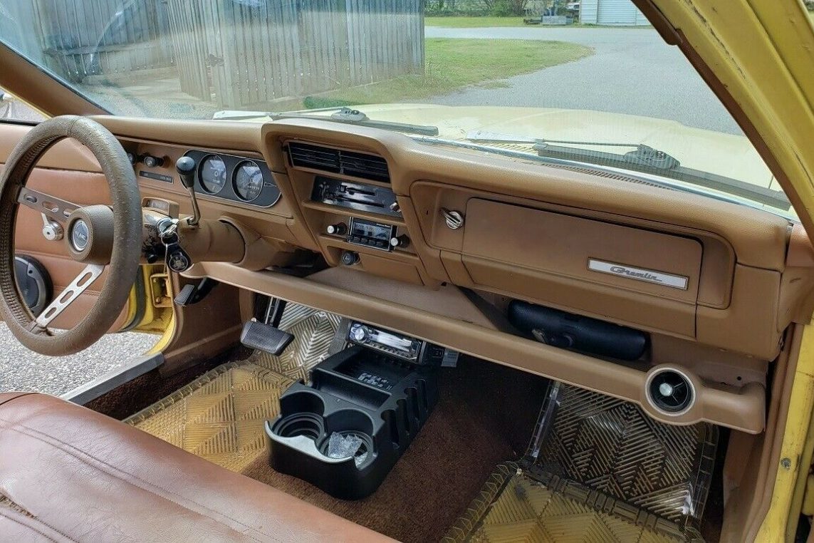 I went to see and drive this car when it was offered for sale by the prior owner. I have owned half a dozen AMCs and was really excited by the pictures. A 20 footer. Up close a disappointment. Agree with many of the Barnfind comments. The next owner is in for a lot more restoring than seat covers. The brakes are shot. Steering felt worn. Engine started and ran but will need tuning. A/C there but inop. Drivers door hard to open and close. Tires ancient. Was re-sprayed a lighter shade of yellow that is peeling in placed and chalking. No sour grapes here, it was just too much resto for my (limited) skill and wallet. Positive is it’s a complete car. Has the bigger of the 2 sixes. The AMC 258 makes good power and torque. And the wheels are cool! Would be a great project if you have time and skills. Retail labor will bury you in a hurry. I beg of the next owner, restore the existing power train and avoid the temptation to do an LS swap.