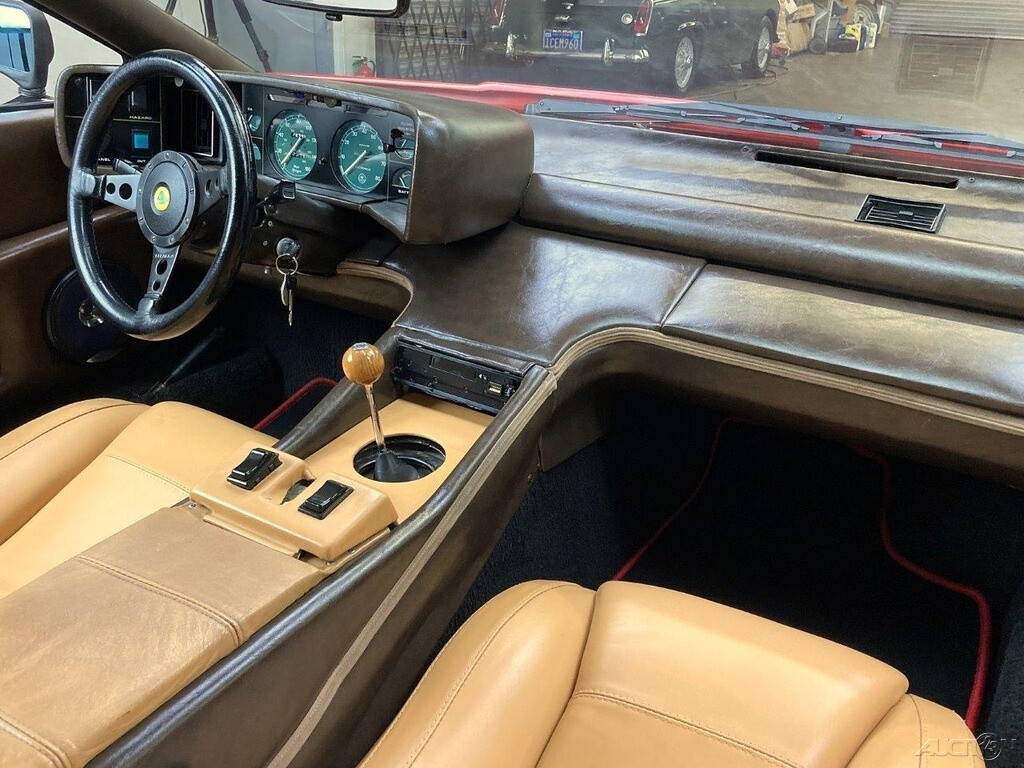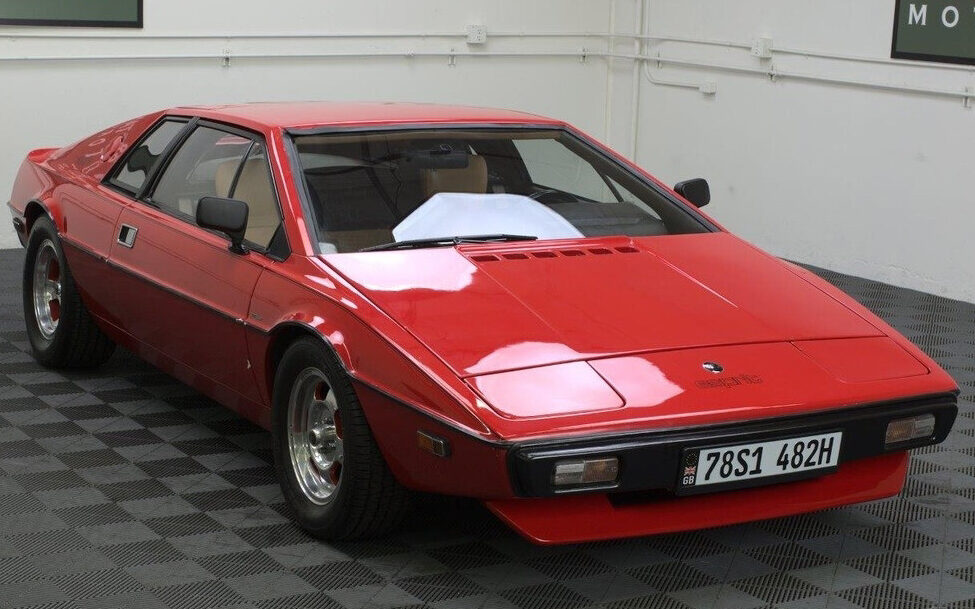 The Lotus Esprit is the Europa all grown up. The car was conceived in 1971 when Giorgetto Giugiaro and Colin Chapman met to discuss two new projects – one to replace the Elan and one to replace the Europa. Giugiaro designed a new mid-engine closed car using the “folded paper” concept of hard-edged linearity that had become popular in the 1970s. Influenced by another Giugiaro design, the Maserati Boomerang, it sat on an elongated Europa chassis and its engine was evolved from the twin-cam four-cylinder used in the Europa, now displacing 1973 cc’s. The Esprit was built in several series, with collectors viewing the rare Series 1 as the “pure” form of this car, despite its questionable competence. Here on eBay is a 1977 Lotus Esprit Series 1 with an asking price of $32,500. This car is at Kurt Tanner Motorcars in Santa Ana, California. Only ten driving miles have been accumulated since an engine-out service. While the title is stated as clear, we note the car is wearing a Great Britain license plate and the car has euro-style bumpers – a big improvement in the looks department over the US federalized version – so it may have been a Euro-delivery car.