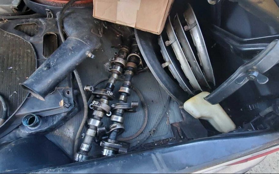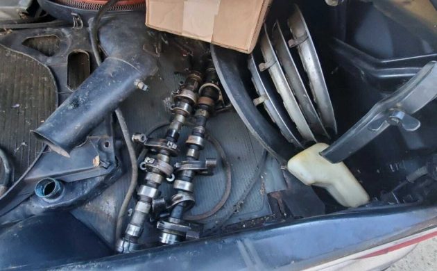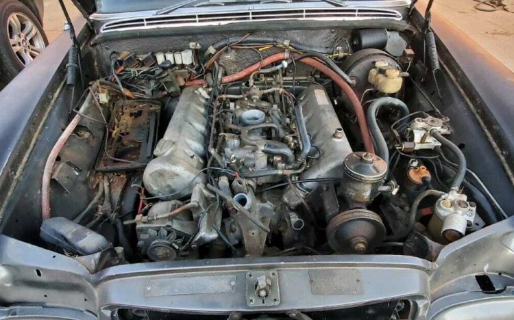 Under the hood is a non-working 197 HP, 3.5-liter V8 engine. How do we know it’s non-working? The hoses and belts are disconnected and the camshafts and other components are in the trunk – never a good sign. The seller adds, “Engine revival work has been started by prior owner“. The odometer reading is 34K miles which probably translates into 134K miles, at least. Starting in 1969, the 3.5-liter engine was available with a four-speed automatic transmission and that’s what’s in place here.