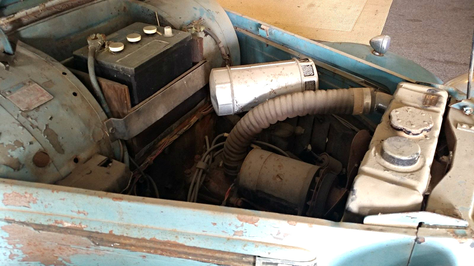 The small 900cc inline four is dwarfed by an immense generator, air cleaner, and radiator. Despite the history lesson from the ebay ad, there is not much information given on this rare Austin. There is a battery in place, but the fine layer of dust makes it seem like this one hasn’t been touched in a while. While there is some chipping paint in the engine bay, there is no real surface rust to be seen.