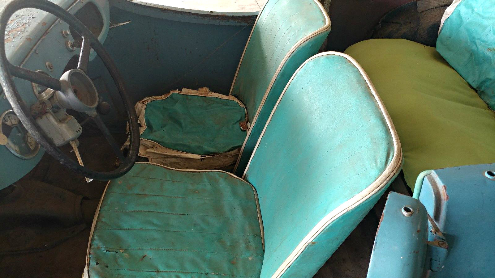 Very basic, the interior is reasonably clean, and appears in fair condition. Due to the rarity and condition of this car, some may feel inclined to leave the car in its present condition, or make suitable covers for the seats to not take away from its originality. The door panels are currently removed from the car, but have aged rather gracefully with only the carpeted sections appearing rough. There is some crazing and chipping paint above the dash, but overall the dash and gauges look very nice.