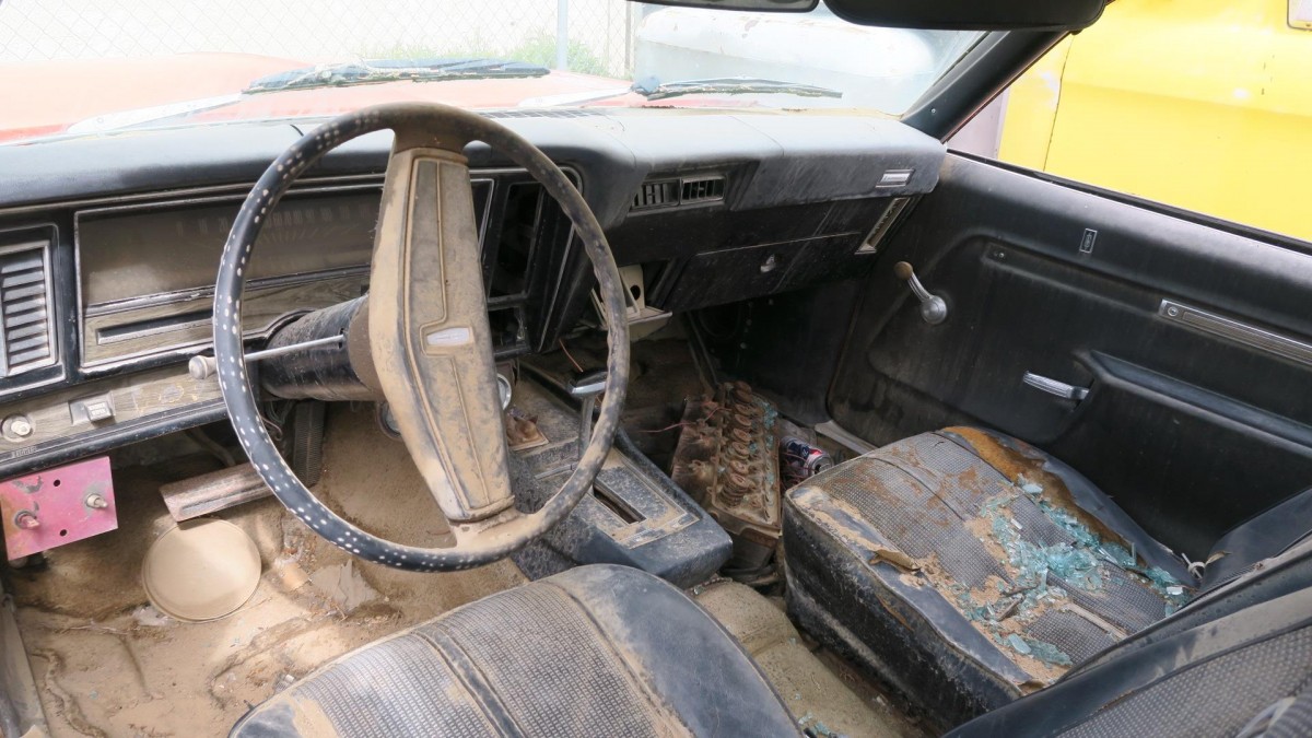 This could be a reasonable entry-level car as long as some expectations are limited. Not a car quite ready to hit the road, it is advertised as a V8 car but frustratingly no engine pictures are included. The engine would be Olds 350 as opposed to the more universal Chevrolet small block. One of the heads is located on the passenger floorboard. It may be a spare but this doesn’t look good for the condition of the engine. The hood looks to have haphazardly placed back, leading me to believe it was removed for major engine work. However, it seems to have a normal stance, looking to still be bearing the weight of an engine.