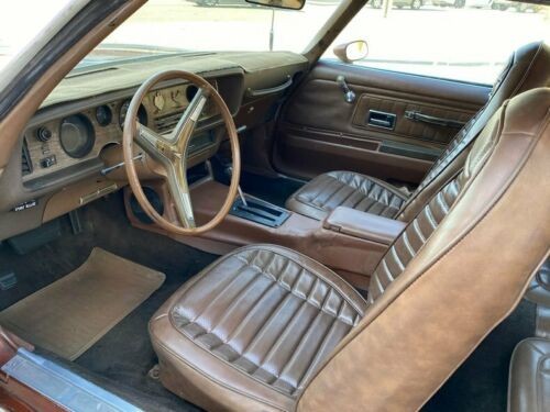 The brown interior contrasts well with the copper exterior. While the dash has cracks and sun damage, the rest of the interior looks respectable. The car is not equipped with too many options but it does have air conditioning. The bucket seats look amazing and it is hard to believe that they could be the original upholstery. The odometer reflects 14,568 miles and based on the condition of the car, that is probably 114,5687 miles as the car appears to be well cared for both inside and out. The carpet looks nice and their door panels show some age. The Formula has the original base steering wheel as the Pontiac “Formula” wheel was an option on the Formula model and standard on the Trans Am. The car does not have the gauge package either which would have included a tachometer, volt gauge, temperature gauge and oil pressure gauge.