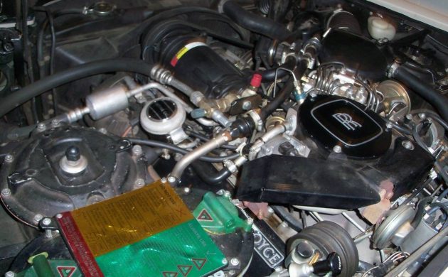Rolls and Royce were aided by Rolls’ partner Johnson, acting as Managing Director for the new firm. It was Johnson who promoted the car’s silent engine and strong performance, creating the tag line, “not one of the best, but the best car in the world”. Propelling this magnificent machine is a 6.75-liter fuel-injected (US delivery) V8 first developed in 1959. Horsepower runs about 220, and the gearbox is a three-speed automatic. The Silver Spur was introduced as the long wheelbase version of the Silver Spirit, and many prefer its ride to its four-inch shorter sibling. The self-leveling suspension licensed from Citroën can be a pain point, but this one has new rear accumulator spheres, gas springs and seals. The brakes are disc all around, and we’re pleased to see new rear brake accumulator spheres. The power steering has been rebuilt, and the rear axle seals, fuel pump and tank sending unit are new. Someone’s touched the engine lightly – the valve cover gaskets have been replaced.