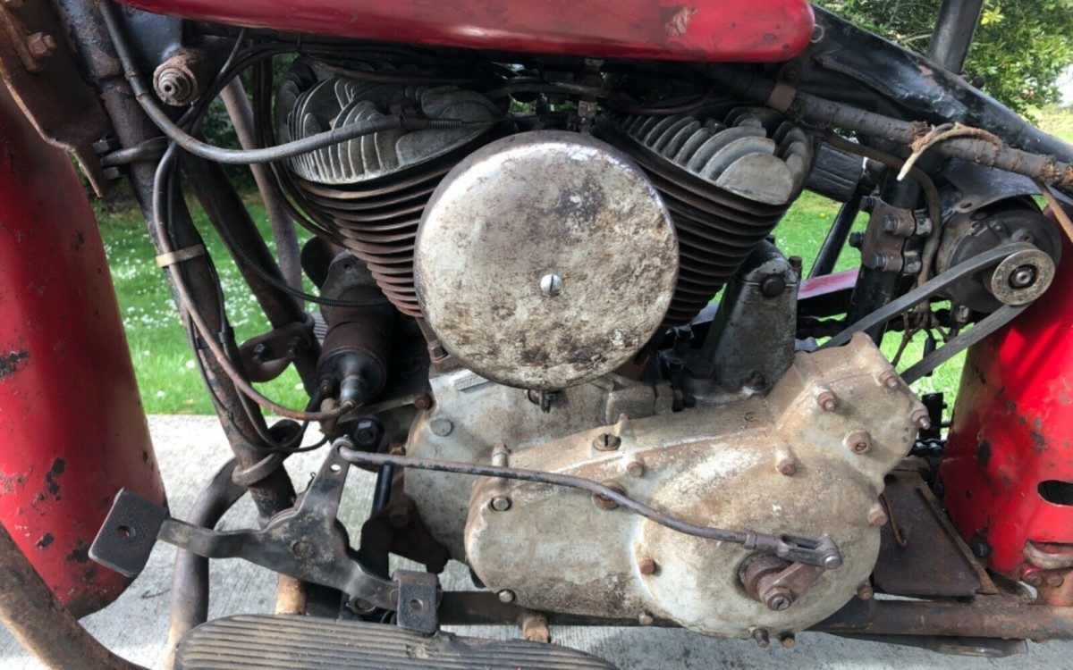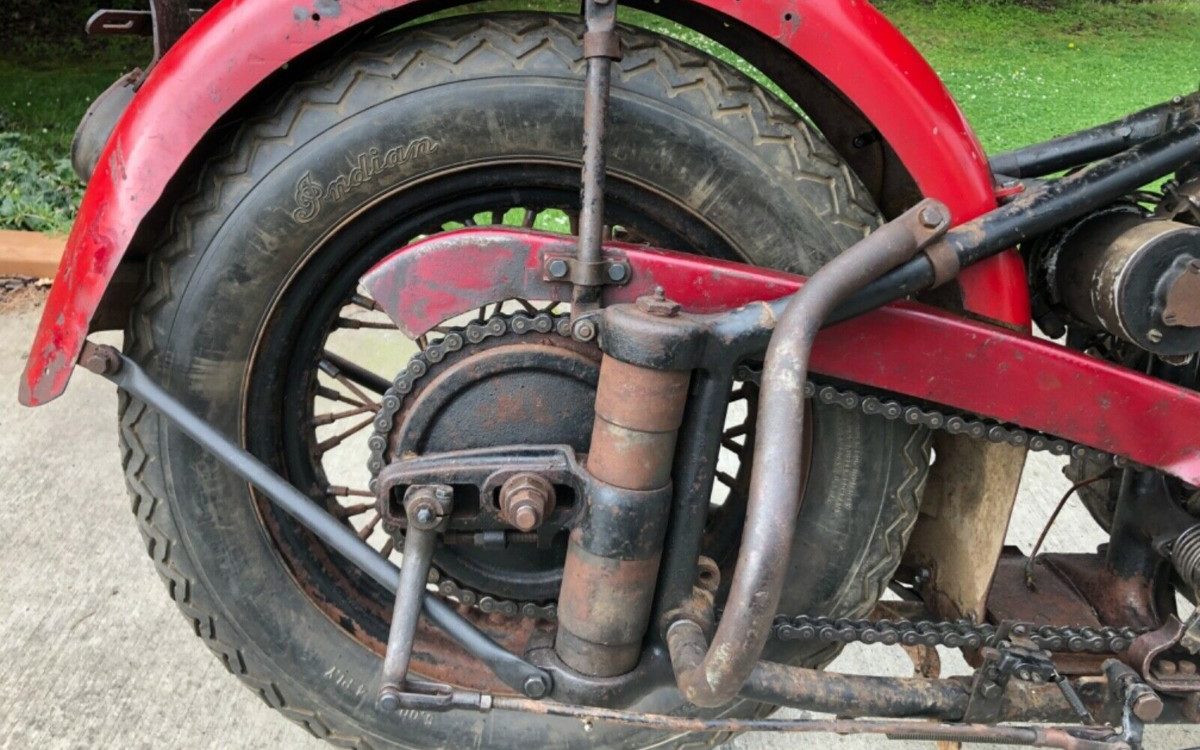 The seller says the chain guard wears its original paint. You can see it’s a slightly darker shade of red than the fenders. Apparently the bike was repainted sometime before 1953 and the seller has removed some of the “new” paint on the tank to get down to the original Indian paint. Overall, this bike looks like a good project for someone with a huge up-side. What do you think?