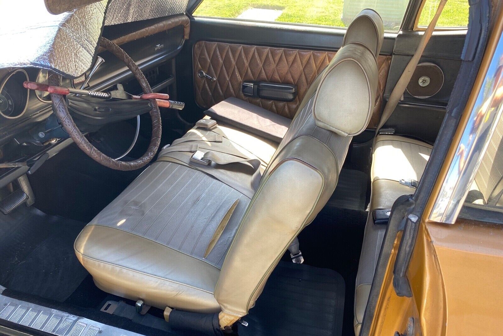 Diamond pleat on the doors and dash…?? Maybe for a ’50s car… Although the upholstery work is great… Not in the ’70s…the paint scheme looks to be correct…Saw many like this one in my days at high school .
