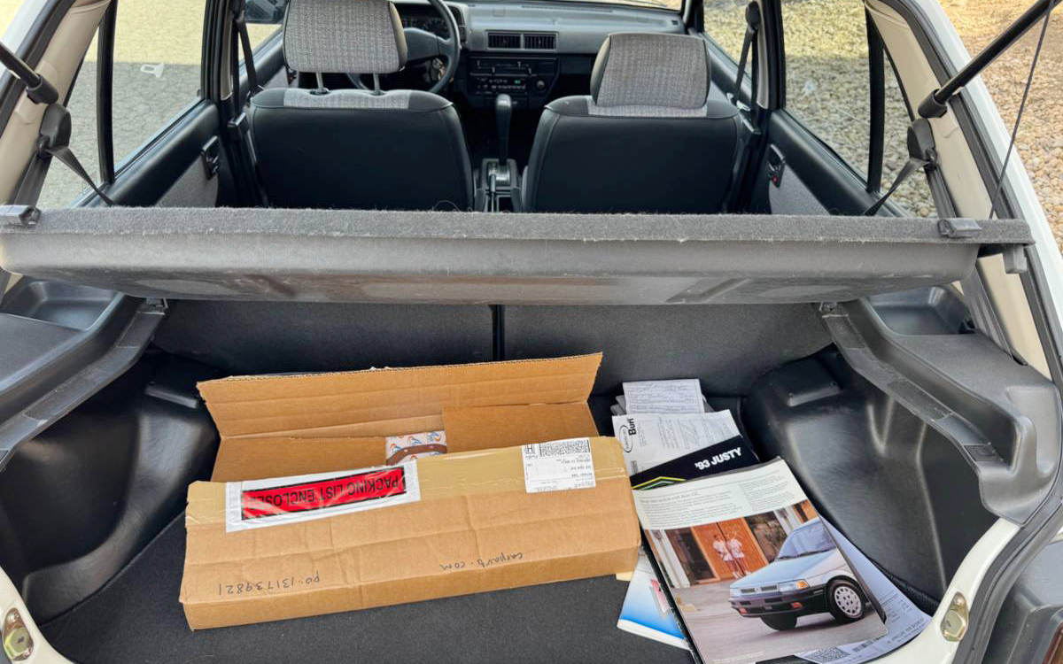 We got the Justy in two generations here in the U.S., from 1987 through 1994, and that’s it. I think it was just too small for Americans, even back then, before everyone realized that they needed a seven-passenger SUV to commute in. The rear cargo compartment is looking like new, and whatever you do, don’t lose that cargo cover; you most likely won’t find another one.