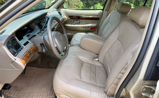 Every Third Generation Grand Marquis left the factory equipped with a 4.6-liter “Modular” V8, a four-speed automatic transmission, and power-assisted steering and brakes. This car’s anti-lock brakes should allow it to stop safely on a dime. The 1999 Sales Brochure quotes power and torque figures of 200hp and 275 ft/lbs, and several contemporary road tests confirm that achieving fuel consumption figures on the “good” side of 20mpg was pretty easy. Potential buyers can consider this Mercury to be a turnkey proposition. It runs and drives beautifully, starts easily with a twist of the key, and the seller states that there is no evidence of fluid leaks. The seller is willing to negotiate in-person inspections, suggesting that they have nothing to hide.
