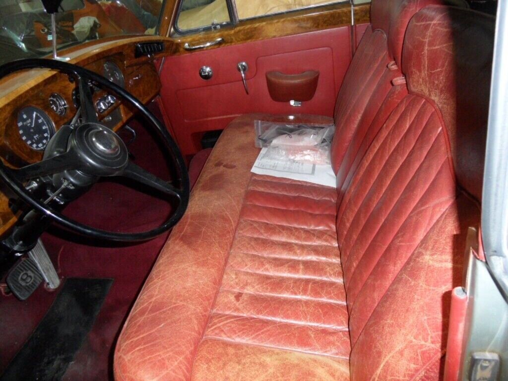 This is a rare left-hand drive car, though the odometer is marked in km. Note the air conditioning switch; providing AC was one of Bentley’s goals when it upgraded the S1. The interior needs TLC, but I bet those seats can be resurrected with the right emollients. The wood dash, brightwork, and gauges are in presentable condition. The rear seating area (yes, “area” is the right word) offers plenty of legroom and wood service trays for each passenger.