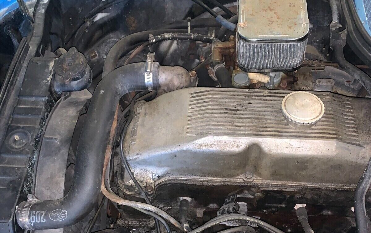 Through 1970, the Opel GT could be ordered with either a 1.1 liter or a 1.9 liter overhead valve four-cylinder engine situated far back in the engine bay for better weight distribution – which still wasn’t great at 54%/46% front/rear. In 1971, the 1.1 liter was discontinued, leaving the roughly 90 hp 1.9 to carry the flag. The factory-supplied carburetor was a Solex, but Weber replacements are incredibly common, usually topped by the rectangular aftermarket air cleaner seen above. The transmission was usually a four-speed manual but a surprising number of GTs arrived with a three-speed automatic. This example is a manual. A revision to the listing indicates that the car does run and drive.