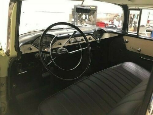One of the best color combinations for 1956. I’ve seen a Nomad done this way and it really pops. Probably not for everyone. There is a 56 four door hardtop near my workplace that has been sitting partially exposed for at least two decades in this shade, along with a 69 Falcon with a vinyl roof — slowly becoming one with the earth below.