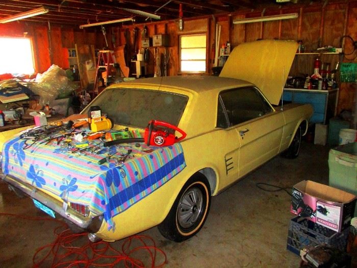 In addition, we see at least two other motors and transmissions in the shop that are said to be from Mustangs, but they don’t look complete enough to tell which ones they actually are. A guess would be that they’re candidates for the Mach 1 unless a V8 was destined for the ’66 coupe.