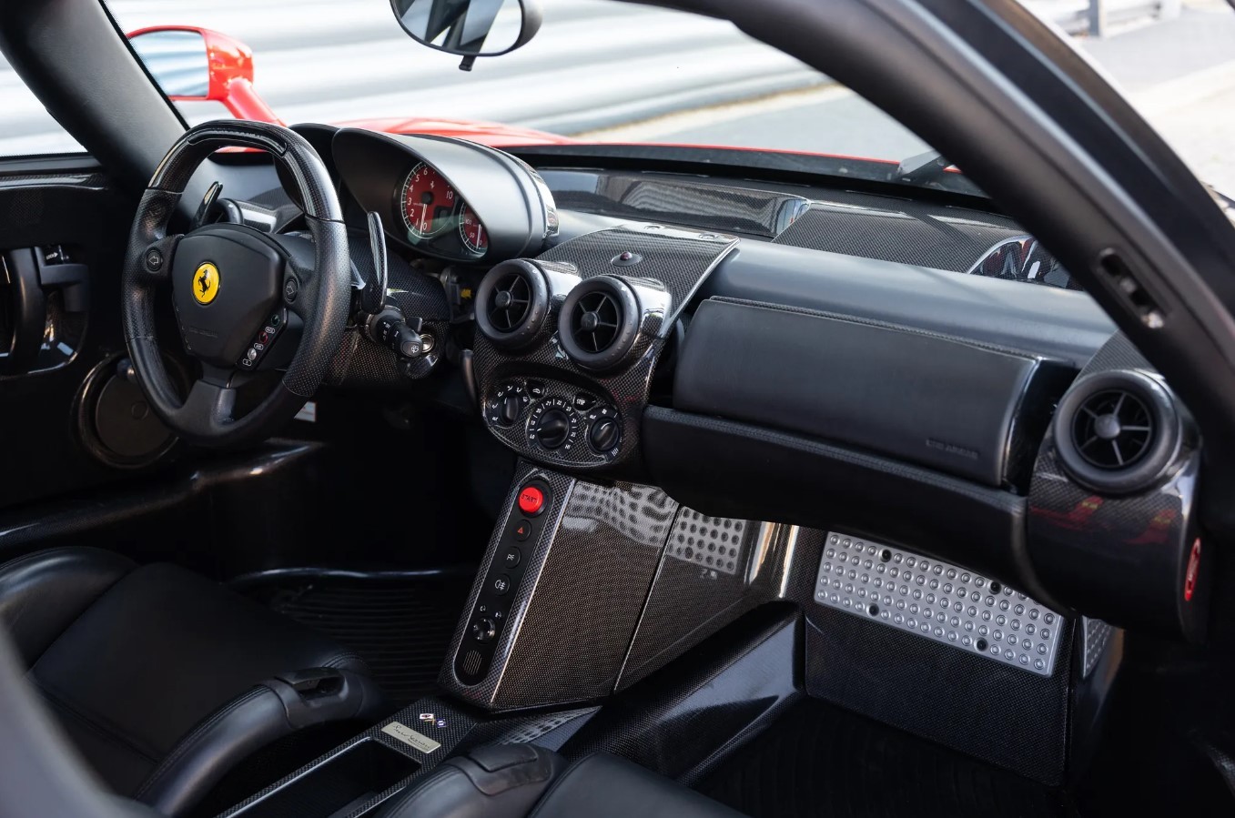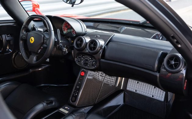 The beating heart of the Enzo is its mid-mounted 6.0-liter V12 engine. This motor is a model of sophistication, with Bosch Motronic fuel injection, four valves per cylinder, variable valve timing, and four camshafts. Each Enzo motor is handbuilt following a sophisticated casting process, making its ability to generate 651hp and 485 ft/lbs of torque unsurprising. The transaxle demonstrates the company’s decision to adopt as much F1 technology as possible. It is a six-speed that utilizes wheel-mounted paddles for the driver to perform shifting duties. The suspension is driver-adjustable four-wheel independent while stopping power is provided by enormous 15″ carbon fiber-reinforced silicon carbide (C/SiC) ceramic composite discs. The curb weight of 3,086 lbs is higher than most people might expect from a car that makes high use of composite technology. However, it can still cover the ¼-mile in 11 seconds. That figure is impressive, but it is the top speed that sets the Enzo apart from mere mortals. Given a long enough stretch of straight road, the V12 runs out of breath at 218mph. It might not be the fastest car on the planet today, but those figures still command respect. The Enzo has only covered 1,141 miles during its life, although breaking in the engine was never an issue since Ferrari performed that task on a dyno before bolting the V12 into place. The seller doesn’t provide a service or usage history, although it would be fair to expect any classic within this price range to be a turnkey proposition.