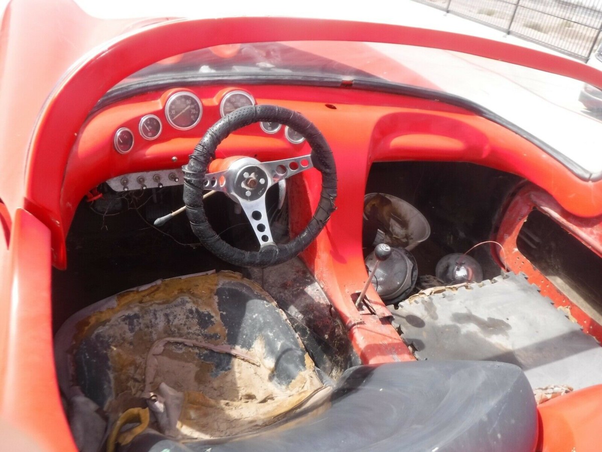 We’ve covered more LaDawri cars than I expected (click here to see previous LaDawri posts) and if you’ve paid attention, you already know that the company started out in Canada but quickly moved to southern California. The bodies they produced could be fitting to a variety of chassis; we’re told this one is titled as a 1951 Ford, so I suspect that’s what’s underneath. Looking at the completion status of the car, I’m willing to bet this one spent some time on the road prior to being partially disassembled. Do you like that cool wraparound windshield? The seller tells us it is actually an inverted windshield from a GMC truck! Who knew? That’s some creative re-purposing!