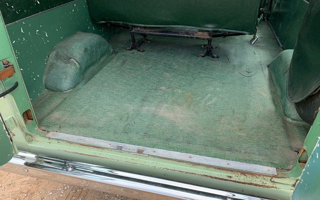 Body-wise, this Econoline is straight and rust-free, with just a few scratches here and there. The chrome, especially in the front, looks new. How the original paint held up this well given that it was probably operated by a large number of people is amazing. The interior is not quite as nice, especially in the rear cargo area. Lots of scratches and scrapes there along with worn-out carpeting. The driver’s seat has some tears to attend to, but the others look fine. The passenger’s side door panel has more scrapes than the rest, so it depends on how picky you are as to whether you would refresh those. The glass is original and looks pretty good. This is a regular Club Wagon; if it was the Chateau version, it would have a lot more goodies and creature comforts.