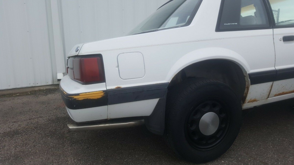 And it makes sense, considering how often officers of the law are multi-tasking while on patrol. Having to shift while also activating lights or operating a CB could make for a slightly busier situation than an officer would prefer. The Mustang seen here still wears plenty of bumps and bruises from police duty, and has surface rust bubbling up along the door edges and in front of the rear wheels. The seller says it hasn’t gotten to the point that it’s rotting through any panels, however.