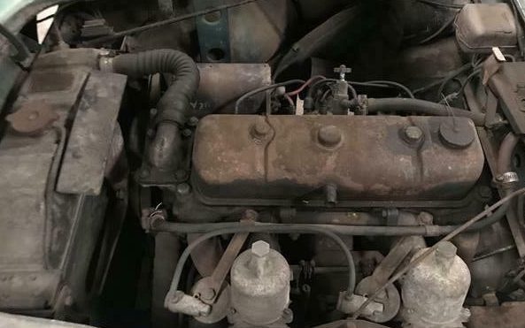 It’s a safe bet that the 90 HP, 2.6 liter, in-line four-cylinder engine hasn’t turned a lick in many years. There is no reference made regarding the motor’s possible operability, specifically, is it seized or will it actually turn over? At least the engine looks complete. Being a first-generation 100 model, the transmission should be a three-speed manual unit.