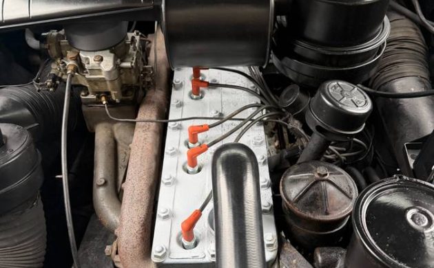 No complaints about the condition of this engine bay, where the factory-supplied eight-cylinder, 327 cu. in. Thunderbolt flathead lives. Equipped with a four-barrel, it’s good for 180 hp. This example comes with Packard’s Ultramatic two-speed automatic, which garnered early criticism for being sluggish off the line. Packard fixed the problem in 1954 when the Pacific was introduced, with “Gear Start”. “Easamatic” power brakes by Bendix were standard. The seller notes the car runs, shifts, and stops well. A slight transmission fluid leak and a “clicking” from underhood when the car is idling probably don’t merit immediate attention.