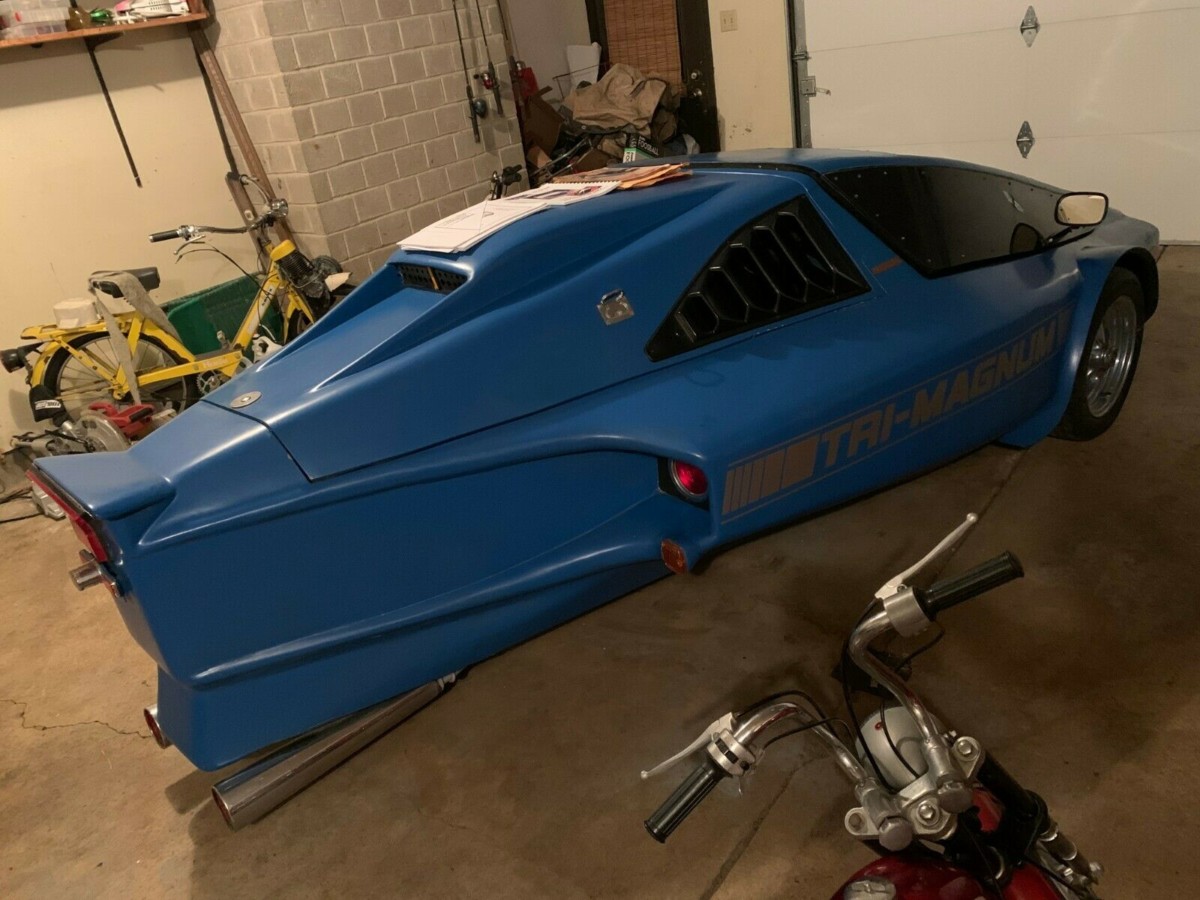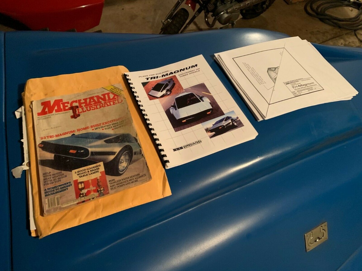 The Tri-Magnum was dreamt up and designed by Robert Q. Riley, founder of Quincy-Lynn Enterprises in Phoenix, Arizona. He and his team started in the mid-1970s, designing outlandish vehicle bodies, watercraft, and fitness equipment. By the early 1980s, the team came up with the Tri-Magnum – basically, it’s a motorcycle chassis and drivetrain with the front suspension from a compact car and completely homemade panels. Featured in the February, 1983 issue of Mechanix Illustrated, one could mail-order the plans for a paltry $17 and build the vehicle however YOU wanted. It wasn’t a kit car, it was a true do-it-yourself.