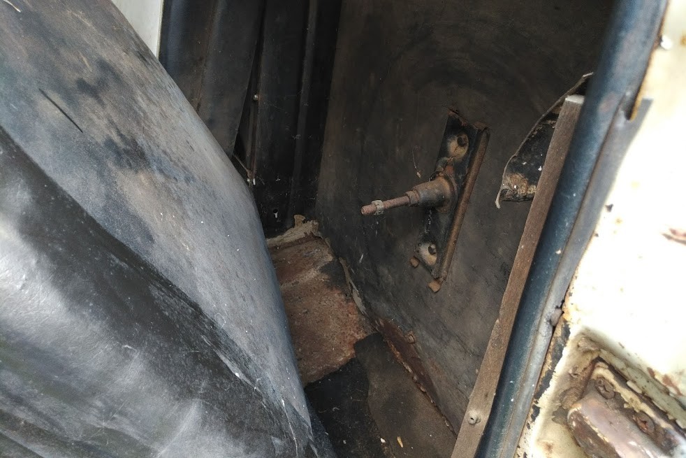 I think I see rivets or nails holding the “quarter” panel on, near the door opening in one of the photos. Which also reveals how awful the running boards are. Tin worms become large in overgrown lots like this!