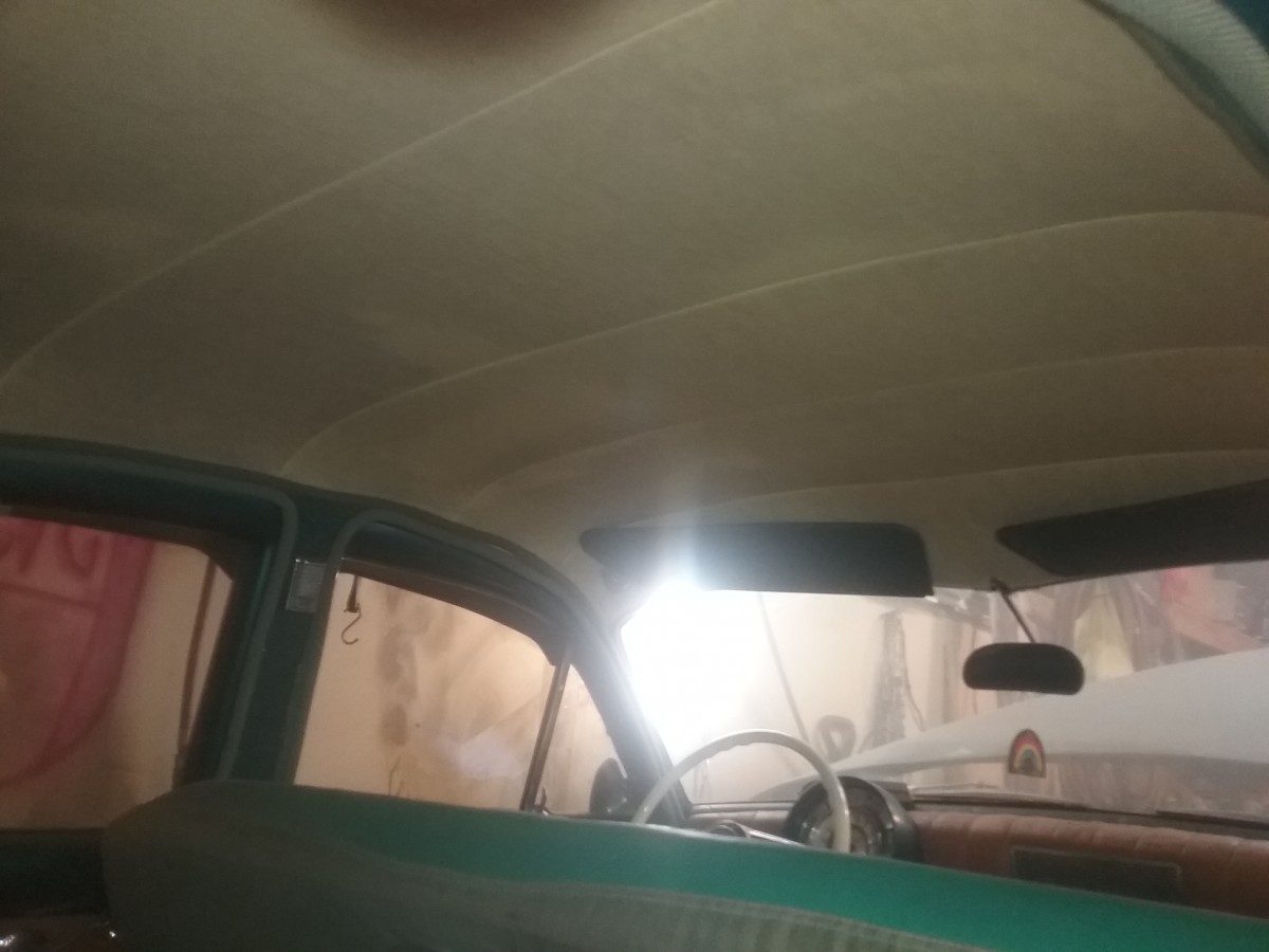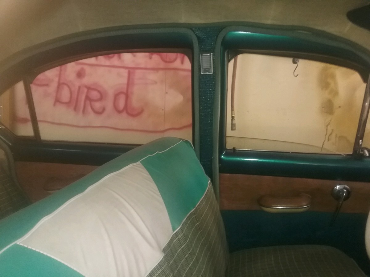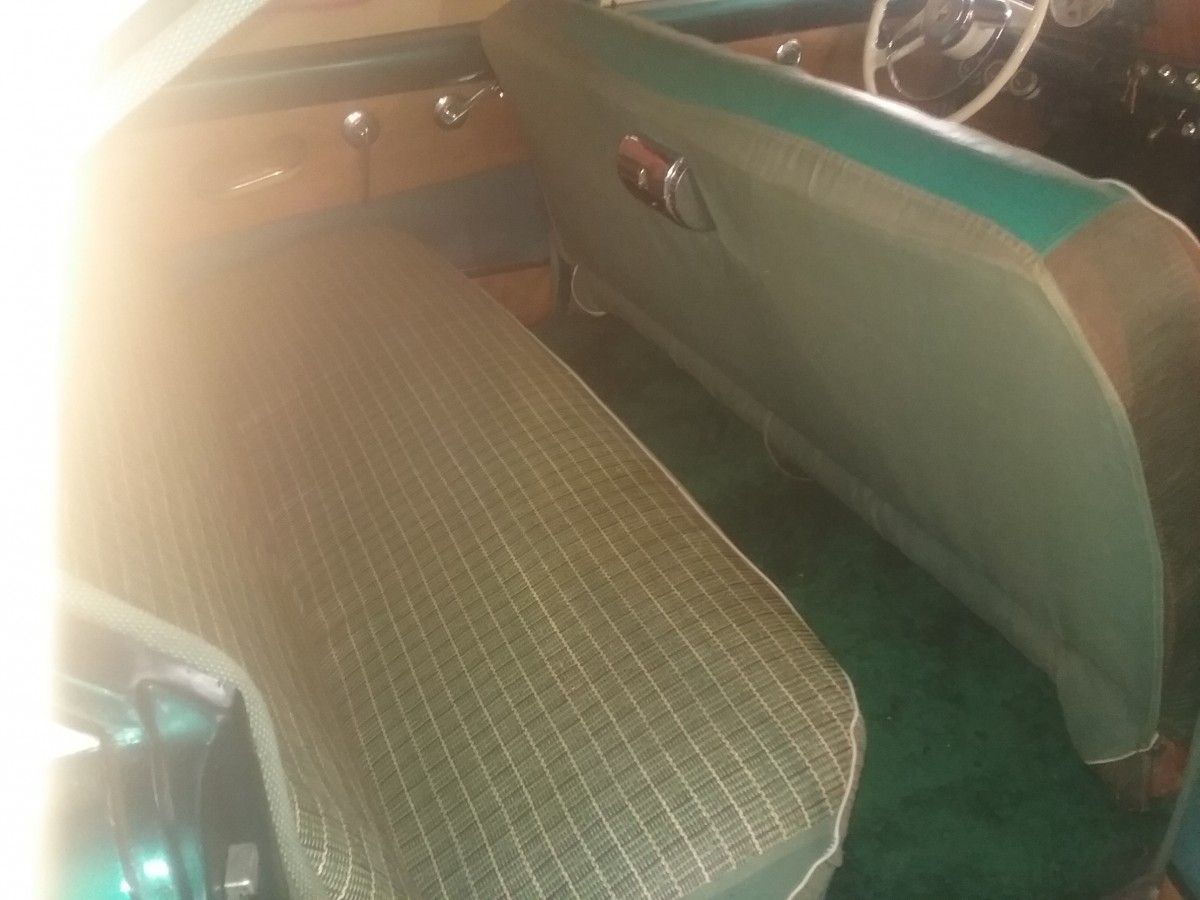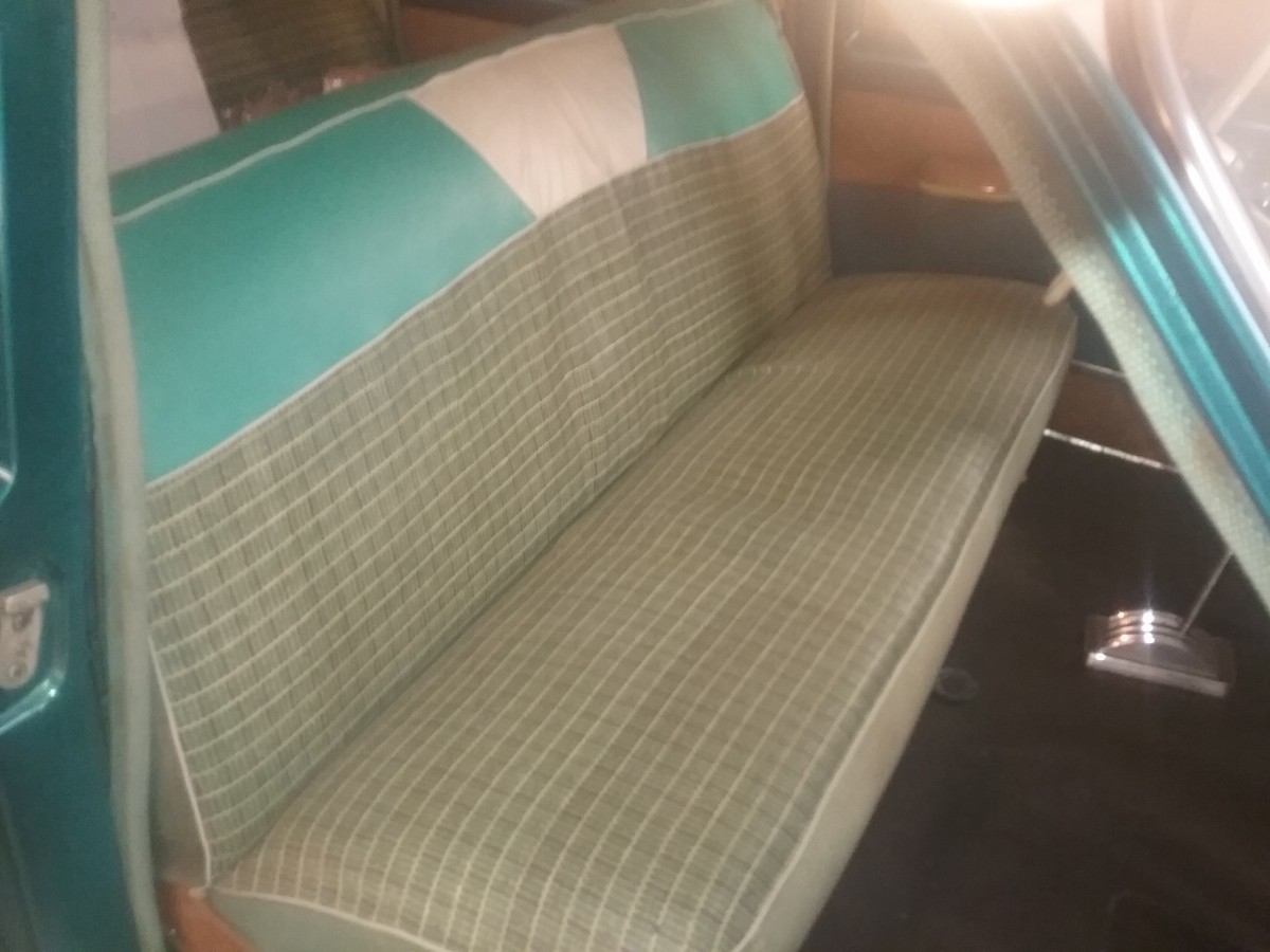Those appear to be period seat covers, which have often been known to conceal showroom-new original upholstery! Might be worthwhile to clean the car, and take it outdoors for some decent photos – it could be a really nice car, but it’s hard to tell.