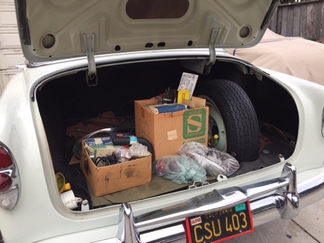 I’m a car lover in San Francisco. I live about 1/2 a mile from this car and it’s the real deal. If I had a garage, I would buy this car. I have a shoe box size garage that my Toyota barely fits in. Picture a Model T and that’s the size of the garage. I pay $280.00 a month for it. The avenues in the west part of the city used to be filled with these kinds of “barn finds”. It was a middle class neighborhood with people who bought cars and generally held on to them. The husband would pass and the wife would leave it in the garage until she passed. I knew a guy that drove for Luxor Cab and he would ask all of his fares if they knew of any old cars in the neighborhood. Once and a while he would find one. Those house are built right against each other with fully paved floors and the living areas are above the garage, effectively insulating the garage on three sides. Notice in the first picture you can see the aluminum insulation sticking out by the right front fender. That’s the furnace for the house. They used to have gravity furnaces before the forced air units now and those things were so hot you could get burned if you left your hand on it. They warmed the garage and usually at worst, if you didn’t wax it you would get some surface rust. If you left it outside, depending which micro climate you were in San Francisco you will get varying degrees of rust from light to severe.