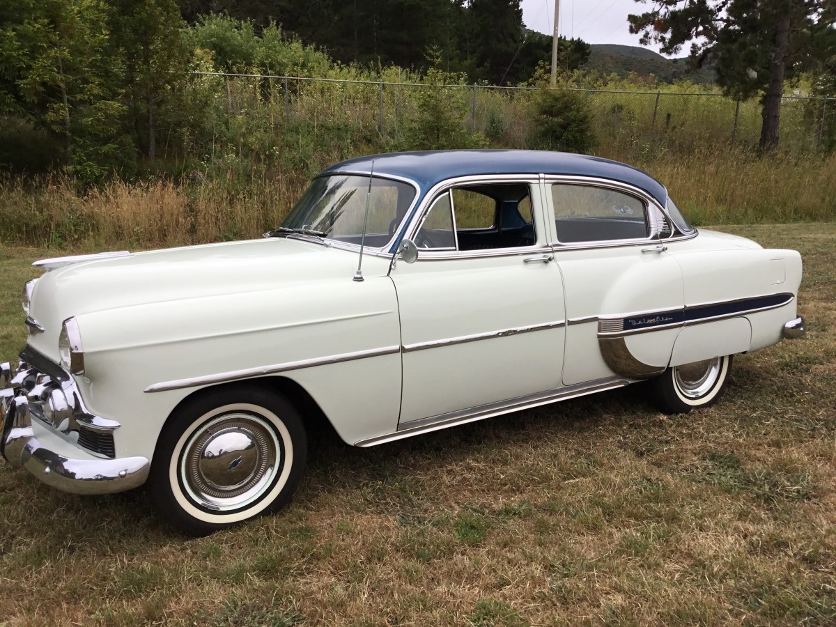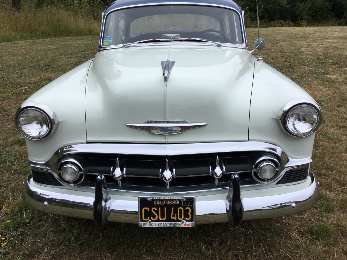 Make that a 54 baby blue 210 without fender skirts and you’d have the car my folks had. My one set of grandparents had a similar 54 BelAir automatic. Both were very good, dependable cars.