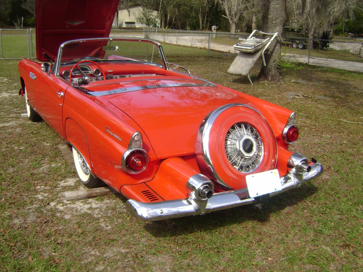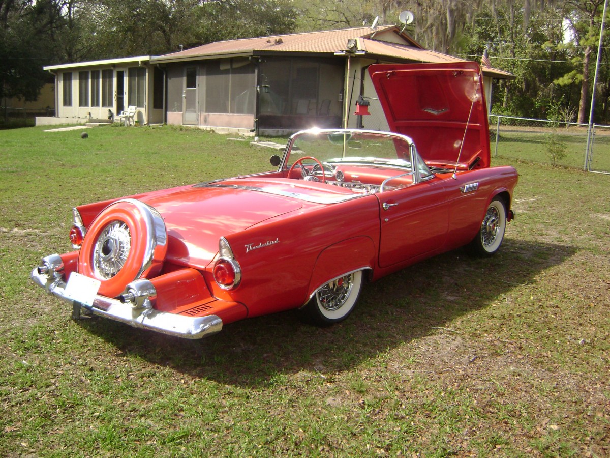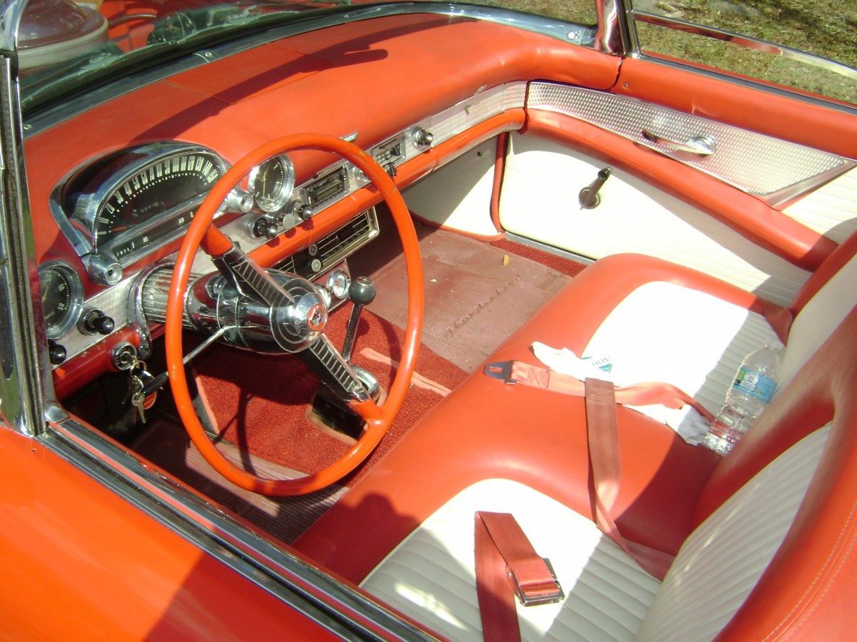 Nice looking car and it looks like it has a 1960s aftermarket A/C unit…although I’m guessing it is still R-12 and doesn’t work or it would have been mentioned in the listing. The Kelsey-Hayes wheels look nice, too. This car should have a 292 in it, I think, so the engine is not original but perhaps from a later T-bird. The bizarre looking continental kit was only needed in 1955, because the tire was moved to the rear bumper in 1956 and then back into the trunk in ’57, I think. Good luck!