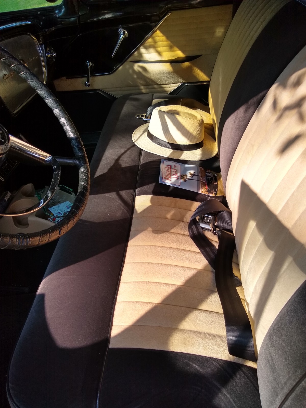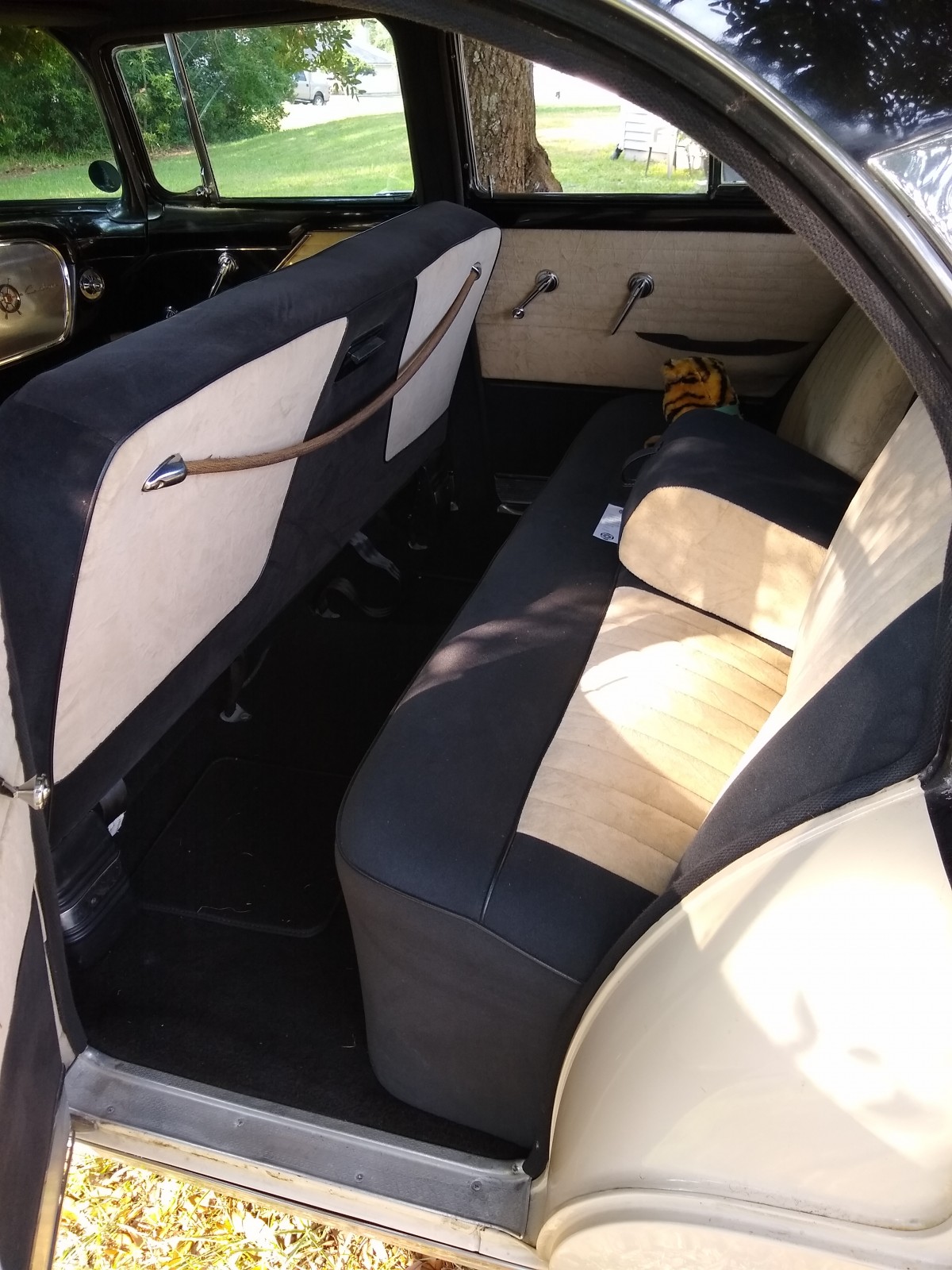 Pretty car. Vintage A/c puts it over the top, and I love the hat on the seat. Some may remember the big law suit between General Motors vs Chrysler over the use of torsion bar suspension. Strange how Packard had it before Chrysler.