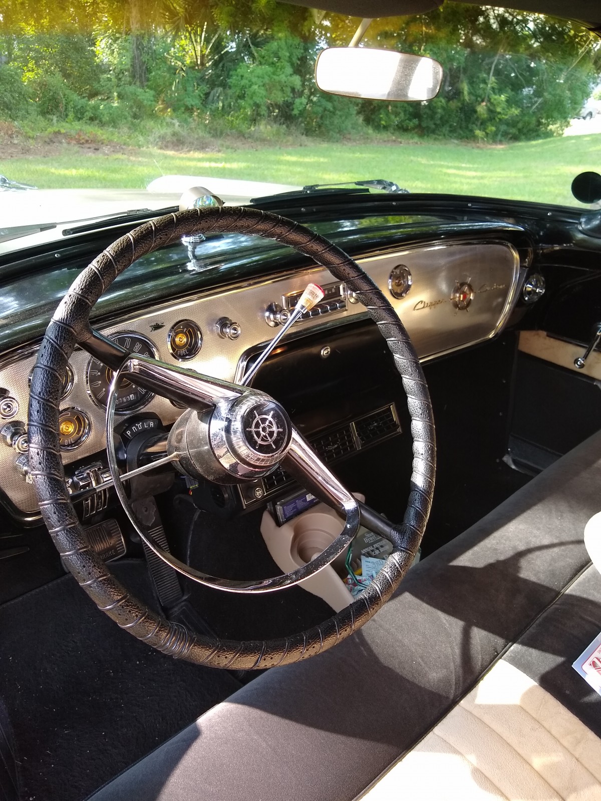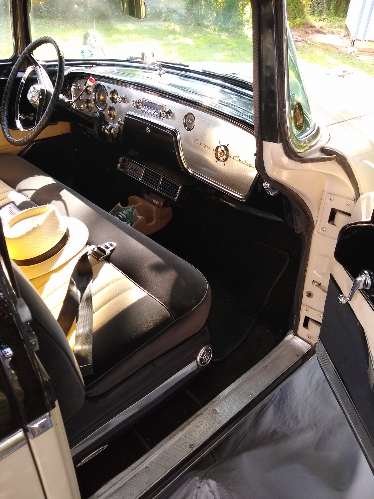 Sharp observers will notice, I don’t believe it says “Packard” anywhere on the outside. I read, James Nance, then president of Studebaker-Packard, wanted to distance the ’55 Clipper as far from Packard as it could, and in ’56, I believe, the Clipper became a separate make. Also, in late ’55, dealers made the factory issue small Packard badges for the trunk, that this one doesn’t have. Problems with assembly, and I believe a strike, caused lengthy delays, and many customers cancelled their orders. The smart ones waited, as I feel, the ’55 Clipper was one of the nicest cars offered. Beautiful car, here, and special piece of history.