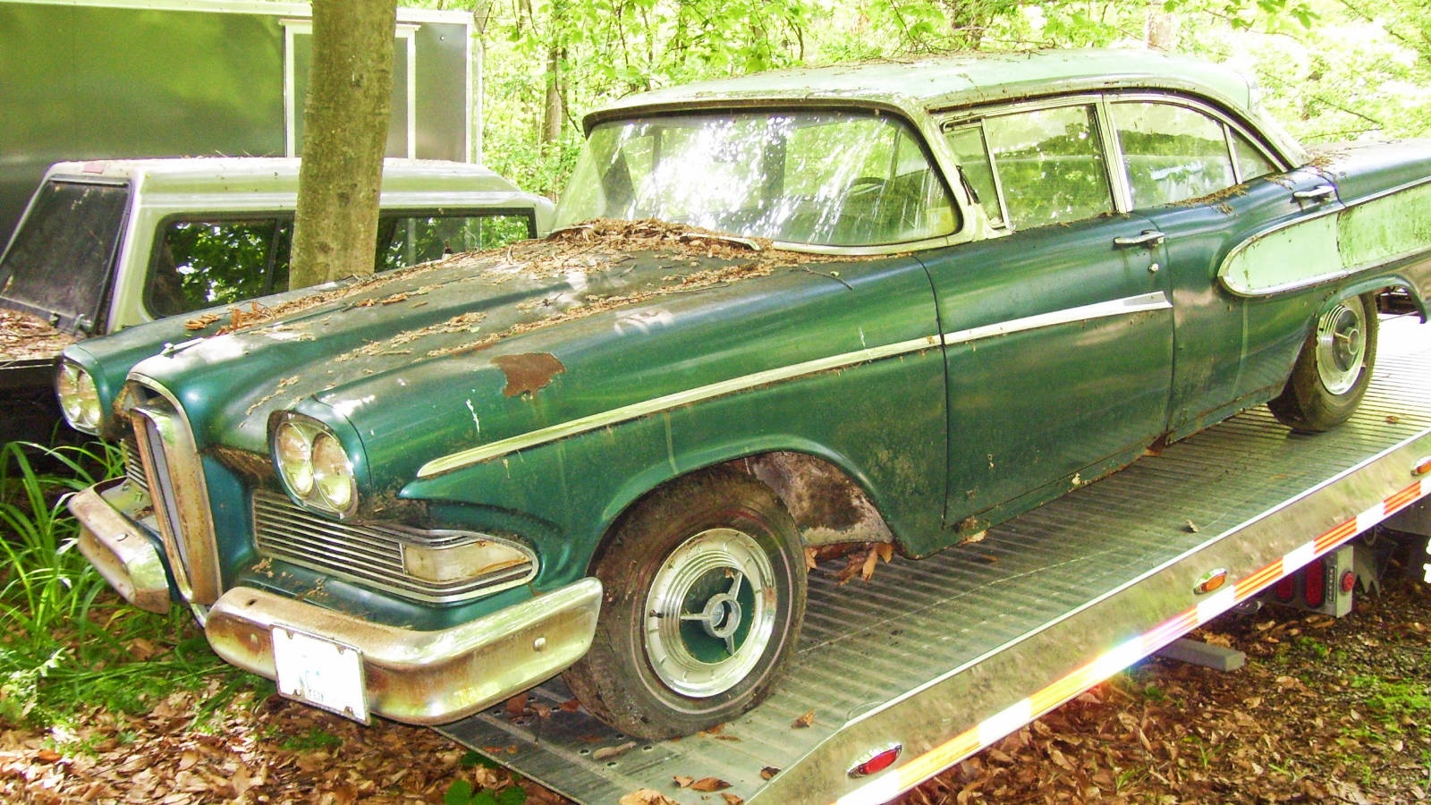Hi RS, it’s very sad, even after 21 years this car is savable but at what cost. When it was parked it only needed minor mechanical work. Edsel people are so passionate about their cars but this guy was not an Edsel guy and not much of a car guy either. We now have it parked in front of my Edsel museum for use as an attention getter and sign. Still hope someone shows interest, but at least here it will be seen. Our local hot rod guy says it will run with work but will need lower door skins, fender and quarter panel work, tire well, inner and outer rockers and all new interior. Stainless is in great condition and the car is amazingly complete. Oh well.