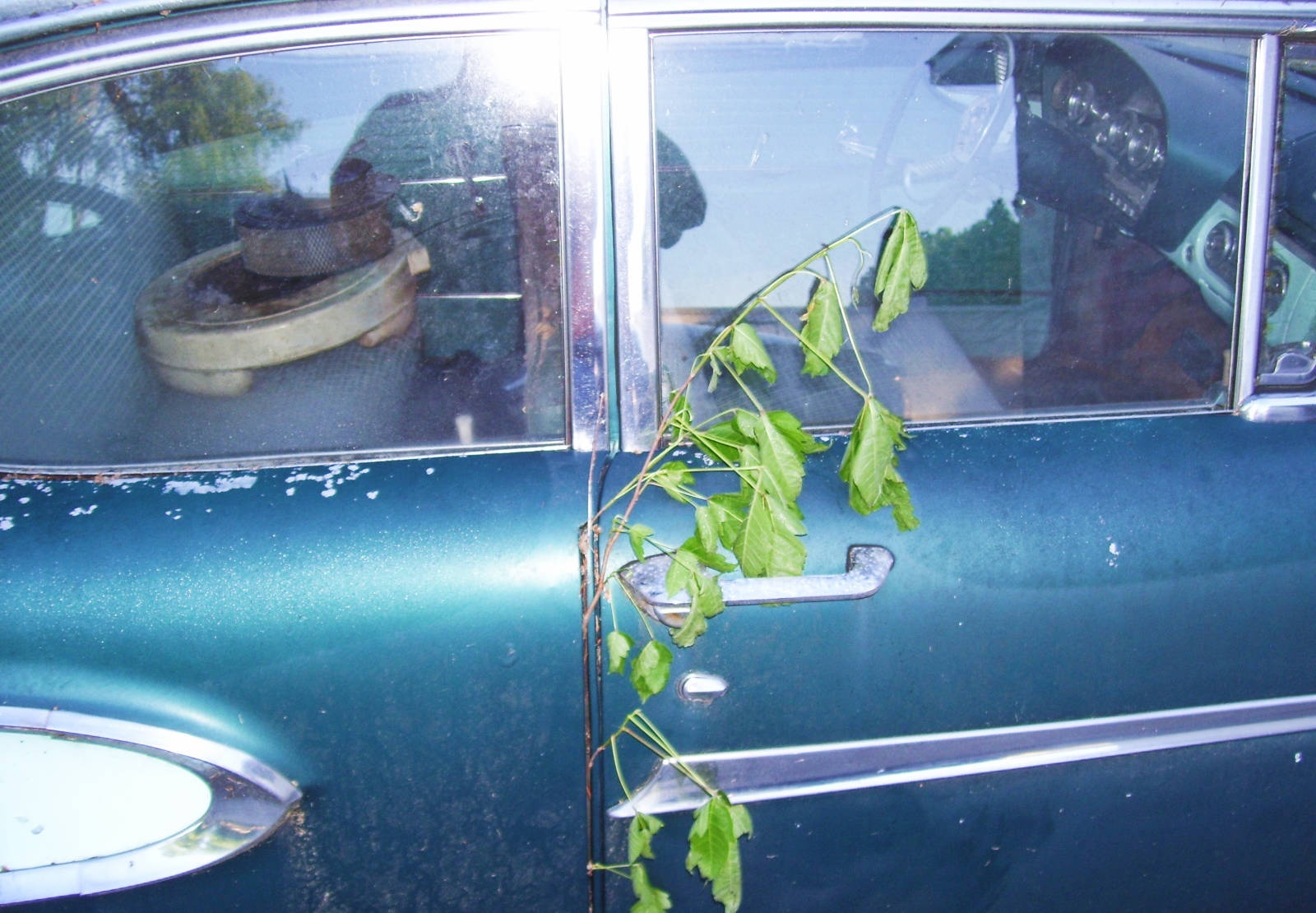 Never, ever, ever store a car outside over dirt – or under trees either – if you want to preserve it. Dirt holds moisture and trees plug up vents and drains and hold moisture in cracks and crevices. So sad to see people keeping cars like this and know they’re just ruining them, most of the time at least.