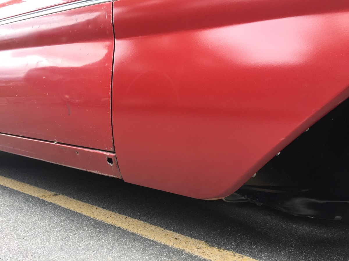 Body Condition: With the car still retaining most of its factory original paint there are no hidden repair secrets. The left side of the body has a few dings and minor dents but the rocker panel has rust damage. The trunk lid and rear panel have some minor dents as well. The right side has body damage to both the door and the rear quarter panel. Those dents may be repairable but may be more cost-effective to replace the door and quarter so those panels will be included (removed from prior owner’s parts car). Since the front fenders had been removed and the rust repair was done so poorly both front fenders have been correctly restored and painted (scuffed to look aged) before being reinstalled. Along with refinishing the front fenders it only made sense to refinish all the front suspension and all engine bay parts before reassembly.