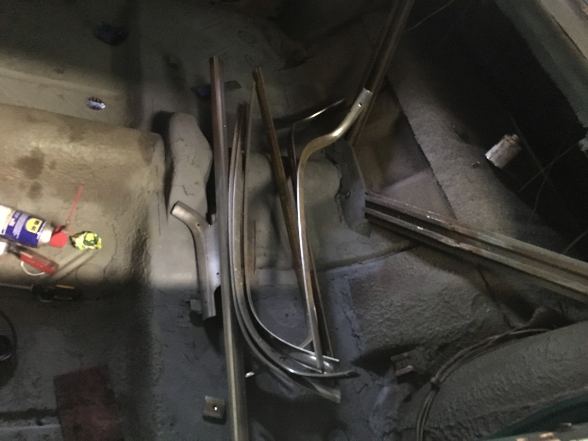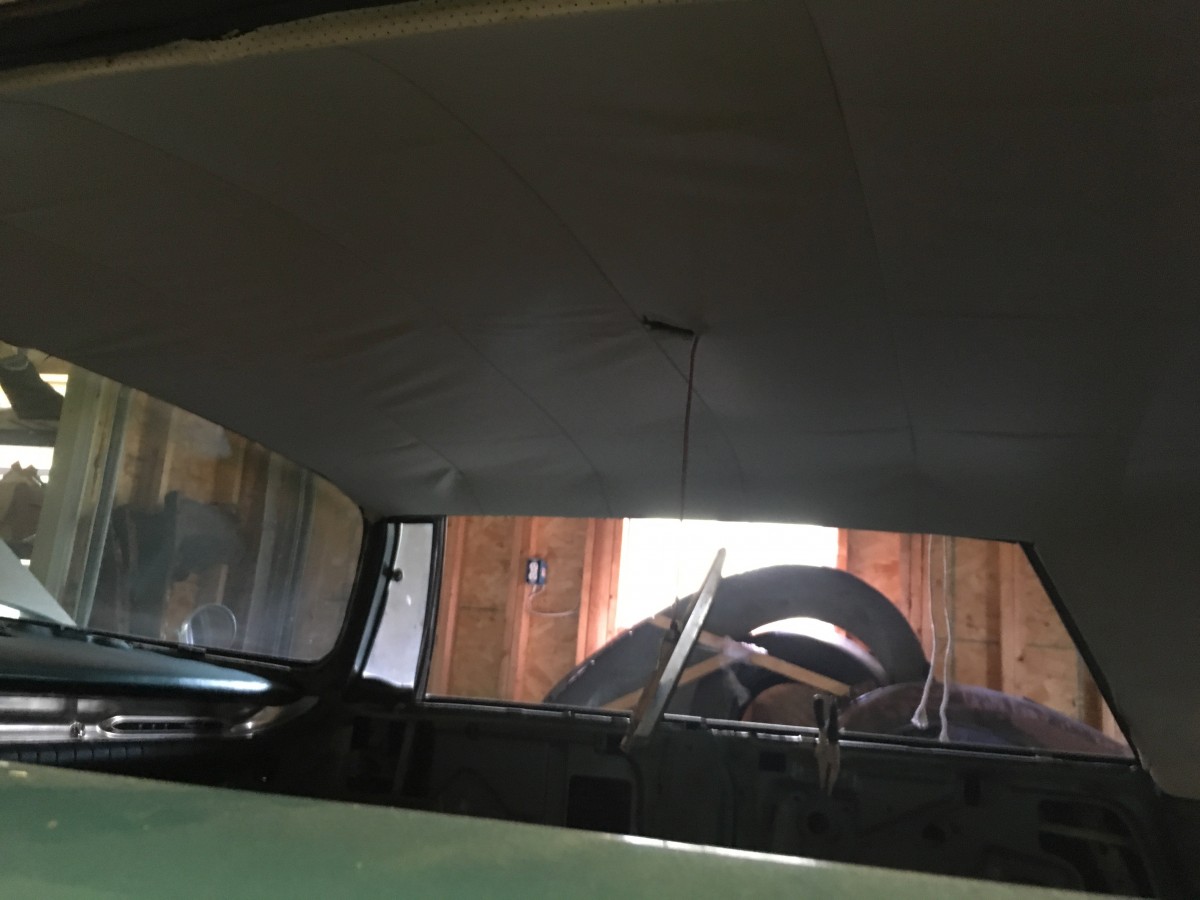 Body Condition: The steel is solid throughout. Small rust under the back seat was repaired with new steel. The body was blocked and sanded before painting in the original shade of Pinehurst Green Metallic (almost iridescent like a Luna Moth’s wings). No dings, dents, etc. Paint has not seen road or sun since about 2000. Door glass is out. New catwhiskers are installed. New weatherstrip is installed on trunk and drip rails but still needs to be applied to doors. Dash had cracks, was patched and painted. Interior chromed trim rails around roof edges are rusty (I had planned to paint to match new headliner, already installed). The impossible-to-find dome light is present and the lens is uncracked. The photos of it all put together are a few years old (before the dust gathered), but is otherwise accurate (and it shows the true color best). Some of the other clean-looking photos are during reassembly and just before it was parked (circa 2000), but it will clean up to this condition with just a wash. Interior supplies (underlayment, carpet, etc.) are here and included, too.