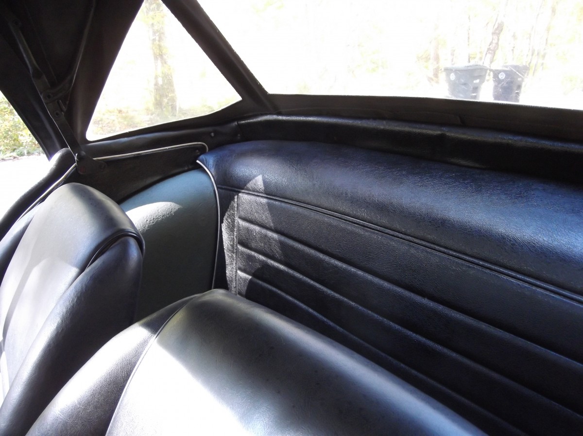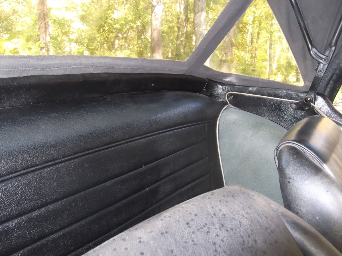 Is it possible those GT6 seats are actually more uncomfortable than the originals? Looks like the horn button was swapped off of another later Triumph as well. I like looking at the Standard Triumph logo in the center of the steering wheel while I’m scraping my left knuckle on the road below the drivers door. This seller did what I did on an MG just to preserve the body for the next owner—I roller painted it with matte chalkboard paint which looked great from about 20 feet away. Can’t fault him for that.