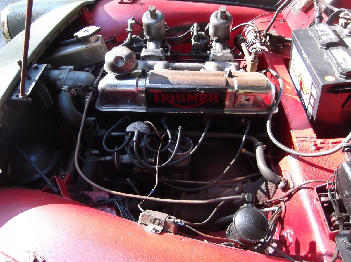 Body Condition: No visible rust. Painted BRG with unusual texture paint. Stock interior with TR6 seats but original seats are included.