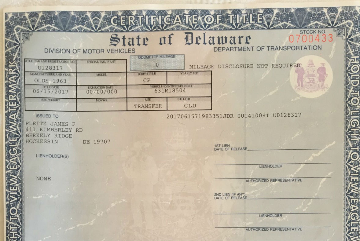 From Jim – 1963 Oldsmobile F85 Deluxe Cutlass Coupe with 74,000 miles. True survivor in Delaware with Ultra High Compression 215CI aluminum V8, floor-mounted 3-speed “Roto Hydromatic.” Have some service records and Olds original “Protect O Plate” metal service ID plate, original owner’s operating manual and 1,200 page service manual. All original except for new ball joints, rear end drive shaft seal, new brakes, lines and hoses with rebuilt cylinders.