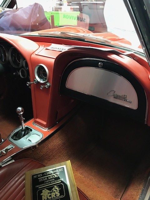 There’s a good chance you have a few questions, such as what is an “X block” and what does being a 3-star NCRS survivor means. Well, X-block cars have an X suffix stamped on the block which denotes being the 375 horsepower fuel injected 327 V8 engine with the transistor (electronic) ignition and the manual transmission. This was the only trim level of the fuel injected engine offered in ’64, but it goes to verify that this is a genuine Fuelie survivor. As for the 3-star NCRS rating. That simply means that this Corvette was judged at the NCRS Nationals and was found to be factory original in at least 3 out of 4 areas. Those areas being exterior, interior, mechanical and chassis.