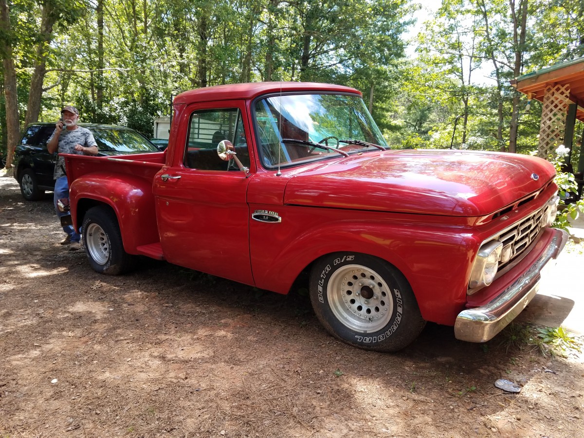 Cool old Ford truck, reminds me a lot of one a co-worker had back in the later eighties. I’d have to add a performance intake and 4 barrel carb, but a 302 is so simple to buy parts for. What kind of shifter is that, anyways? That’s what I needed years ago for my ’72 Chevy. Nice rims, like the lowish stance it has. Anymore I like black rims, whether stock steelies with chrome lug nuts or the beloved torque thrusts. If I could afford the hobby again I’d be interested. Cool.