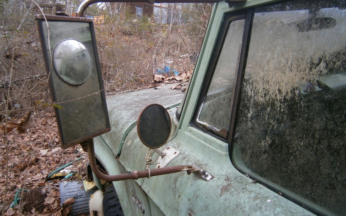 Jeez, take 5 minutes to pull the vines off the grille, rake away the accumulated flora and fauna around the truck and at least take one good picture of the entire vehicle. When people try to get creative with their cell phone camera angle, you know they are being careful not to show the worst of the repairs needed. I always liked the wide open deer in headlights look of these mopar trucks from the 60s, have one of those headlight bezels hanging on the wall of my shop.