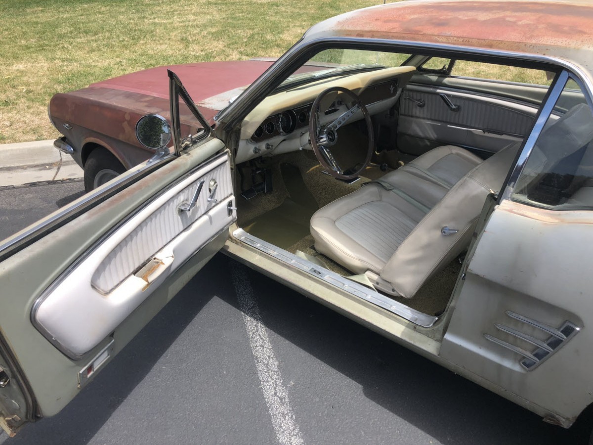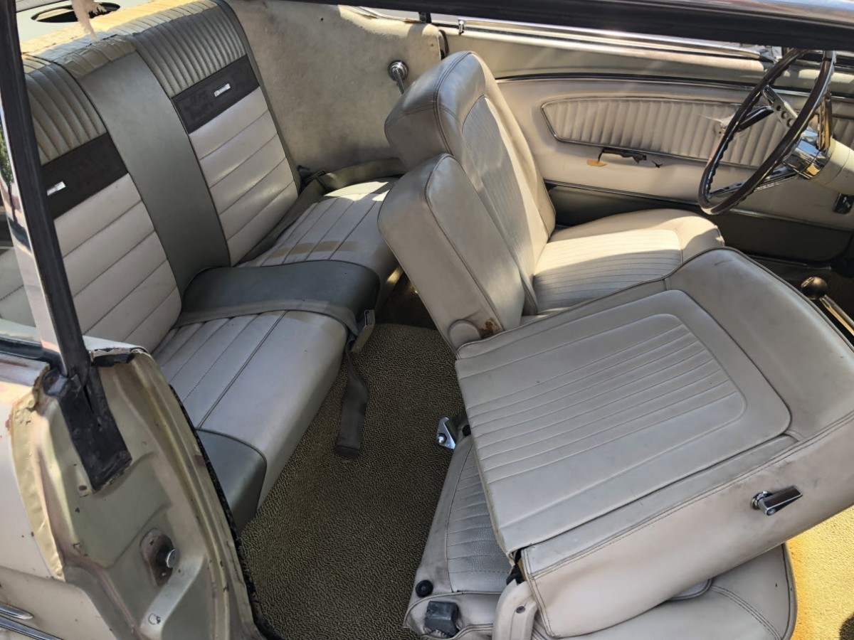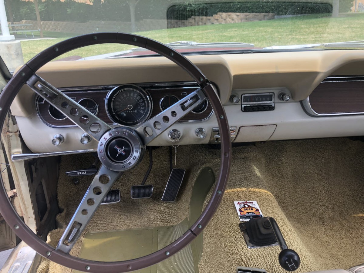 Yup I agree by 1966 there were more than 500K Mustangs on the road. I’m sure a fair share were in Utah. The Front bench is nice but is mismatched with the rear Pony interior. It does have the pony door panels, fake wood wheel and door mounted lights. The remote control mirror is neat too. It probably had buckets originally.