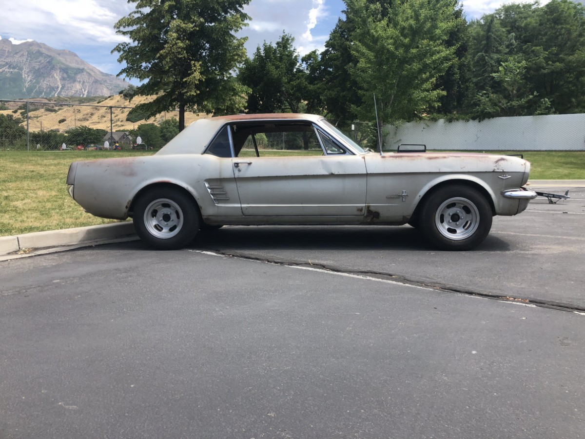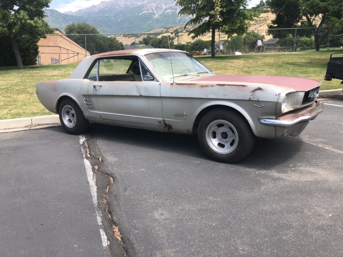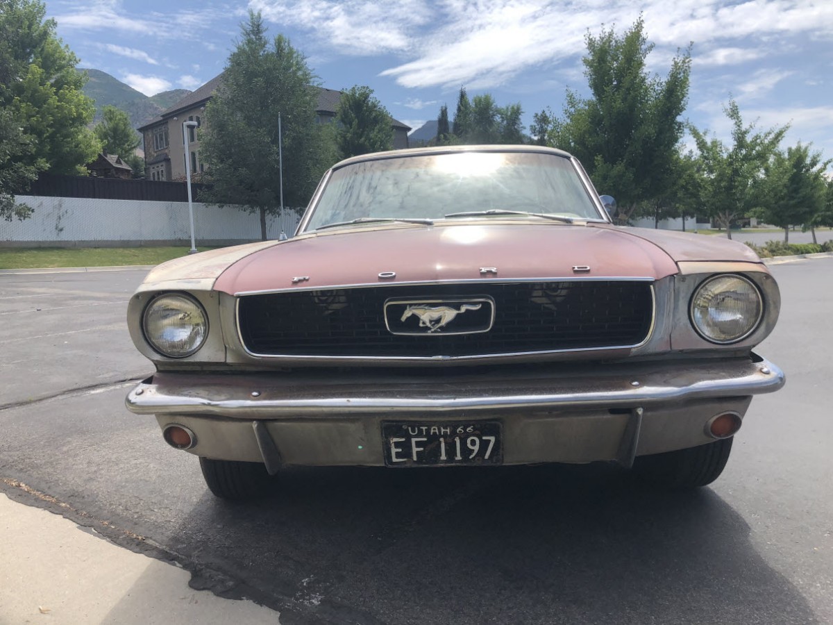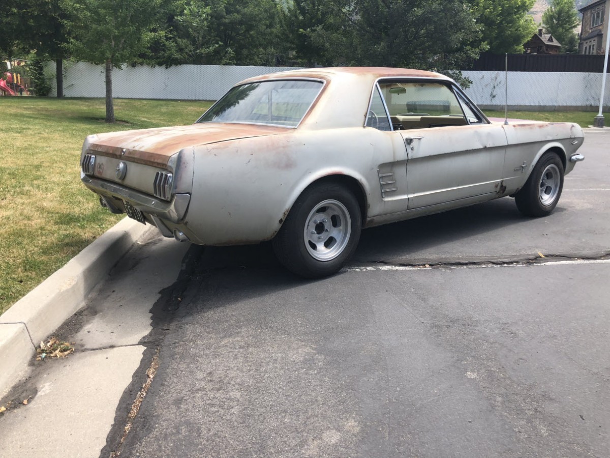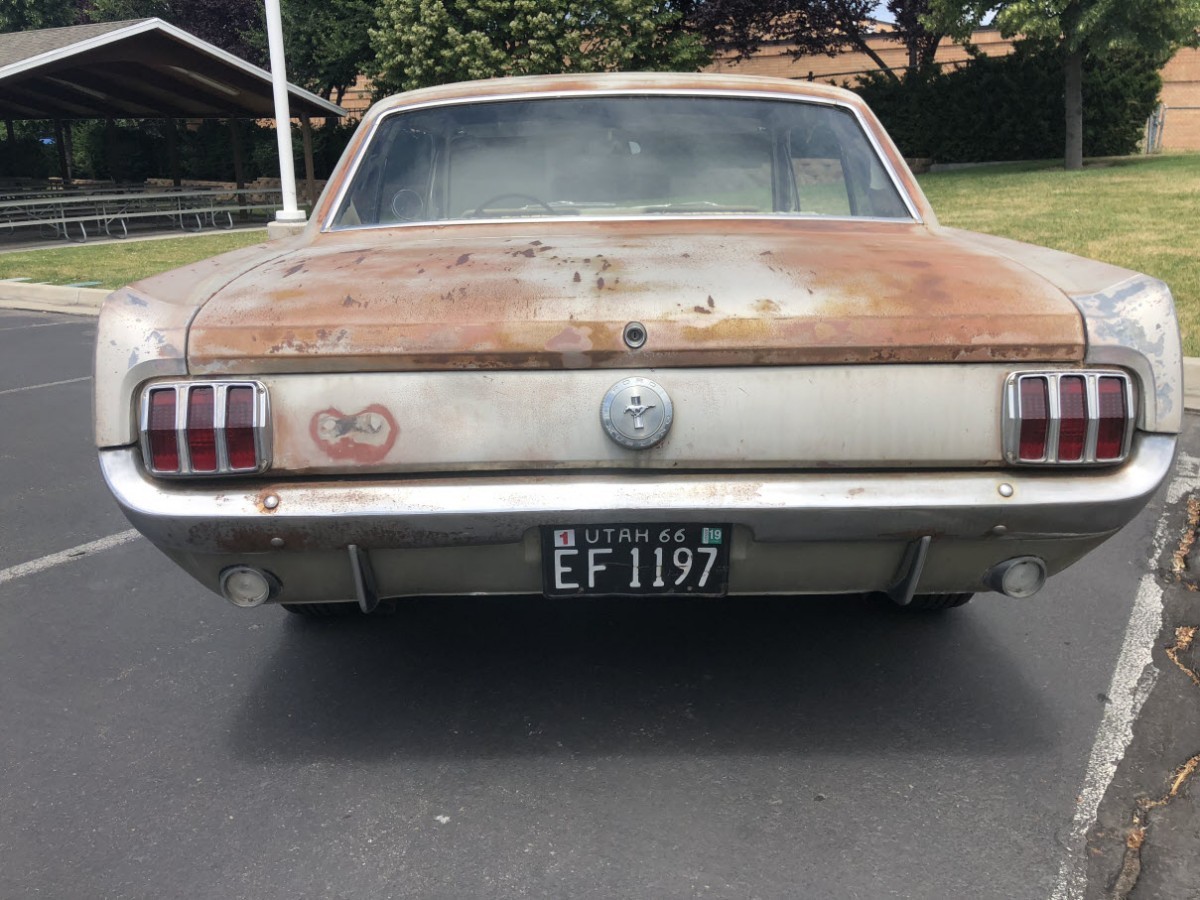 What Makes It Special? Very Rare Barn Find – one of the 1st Mustangs sold in Utah in 1966. It was sold to me with the original one owner title. I found the owner in the local obituaries and called her brother in law. He said he bought a 66 Mustang at the same time and wished he wouldn’t have sold it. The original owner worked at Ogden Ford in Utah and was able to order 2 of some of the first ’66 Mustangs in Utah. It run’s and drives great. Original “Sauterne Gold” paint under the natural popular “Patina” look. It will never need to be painted! Ivy gold Pony interior with new carpet and hard to find “Bench” seat. Original duel exhaust with two Cherry Bomb glass packs. Sounds amazing!