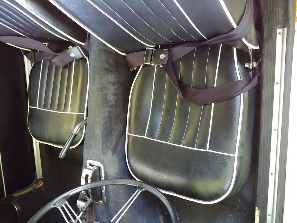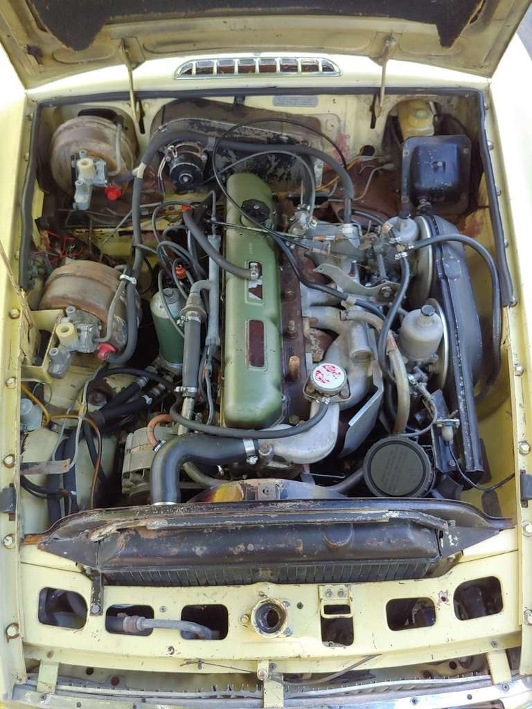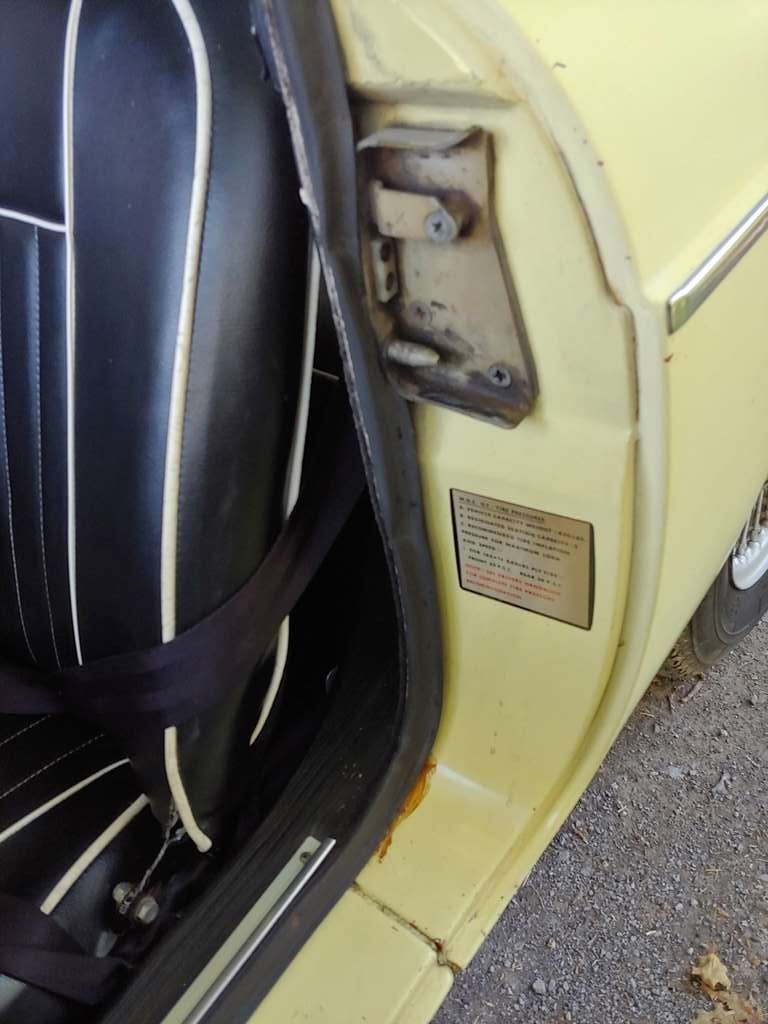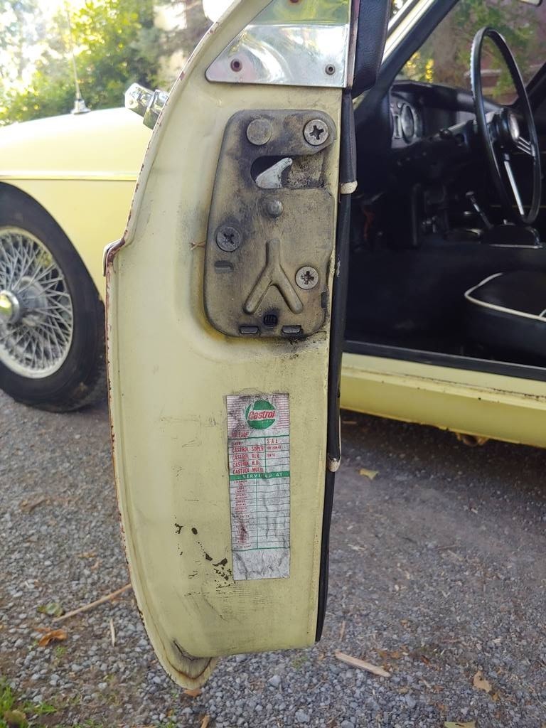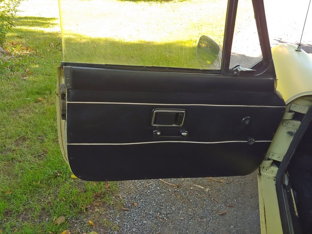 From Elaine – This unrestored, original condition 1968 MGC GT 3 Speed Automatic in Primrose Yellow has been sitting in an Alabama foreign repair shop with a failed water pump, for 32 years! All original interior including ultra-rare vinyl floor coverings. Factory BMC seatbelts, and original banjo steering wheel in mint condition. Runs and drives, with good oil pressure. Still has working original 6 Volt batteries. Brake boosters have been bypassed, but all other braking systems work correctly. Comes with Alabama registration. Many additional photos are available upon request. As is where is.