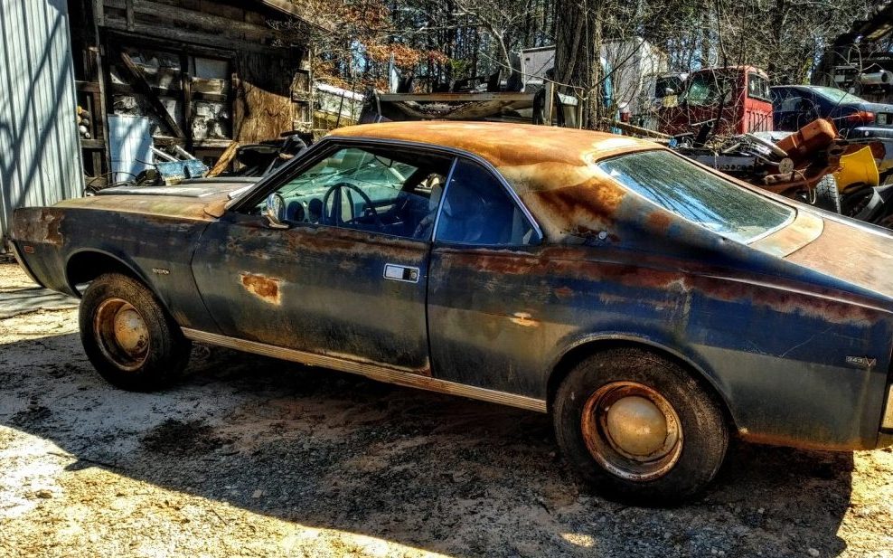 Mechanical Condition: The original 343 V8 has been disassembled and the engine bay is currently empty. The motor will be included with the sale. The AMC rolls and steers and the brakes still function. The car has had good tires and wheels mounted for easy transport and loading. There is also a genuine 1972 AMX on the property that can be included as part of a package deal if desired.