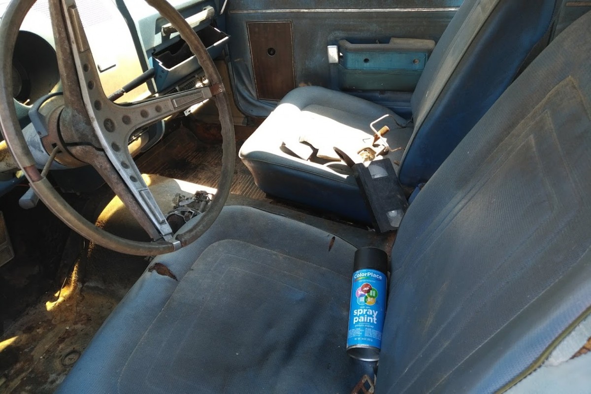 Wow look what the cat drug out…all original with 99 cent rattle can in seat.