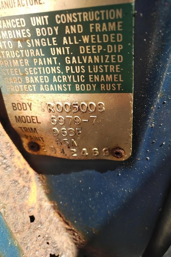 Body Condition: The body itself is in very sound condition with no rot in the fenders. The original chrome trim strips are included and in the trunk. The rear driver floor has some rot-through and will need to be patched. There is also some minor rust at the edge of the driver’s side door bottom. The floor and body are otherwise sound; the trunk floor is also intact. The rear moulding above the driver-side taillight is cracked but can be glued back together. It is included in the gallery photos below.