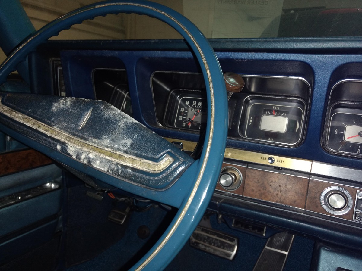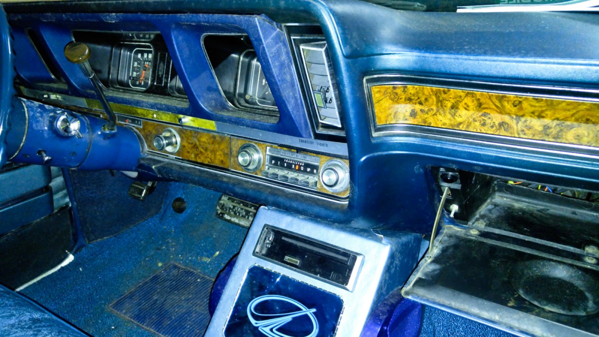 That is one fantastic car! My dad had a ’70 Olds 98 but in aspen green and the same brocade interior but in light green and no power options at all, which I always thought was weird for a luxury car. I’m not sure what a custom console is but I’m guessing not a factory piece. Ours didn’t have anything like that. It was one relatively fast, very, very nice car. I would love to have this blue one.