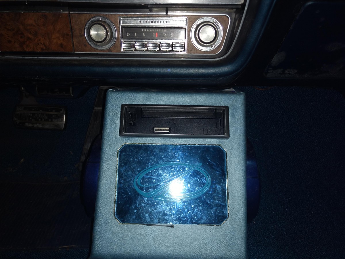 With a non-factory radio, large speaker grills on the sides & a far more recent Olds logo on the front, I’d say that console is newer, not factory.