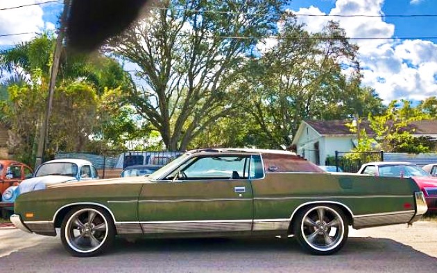 If you have been on the hunt for a classic with a truly unique look, reader Mike D has the car for you! This 1972 Ford LTD Coupe has one incredible look, as it is showing some serious patina. Mike purchased it at a charity auction, got it home, cleaned it and was even able to get it running and driving again. It’s currently riding on a set of custom rims, but he installed those just to drive it around as the original tires were no longer safe and are not included with the car. He has a set of used tires that he can install on the original rims for transportation. If you’d love to give this original LTD a new home, you can find it in Tampa, Florida and you can make him an offer below!