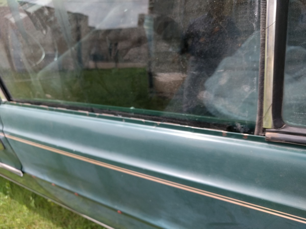 Body Condition: The body shows evidence of a minor prior accident on the rear driver side tail light and there is a scrape along the driver side rear fender and door caused while pushing the car and running into the side of the garage door. The car is surprisingly rust free. Minimal rust inside the doors and in the rear wells, under the window trim is usually where it’s pretty badly rusted but not on this car. There is rust in the trunk, most likely due to water seepage and repairs to the metal will be required. One of the door cards and winder has been removed for another project but all the parts are there for re-assembly.